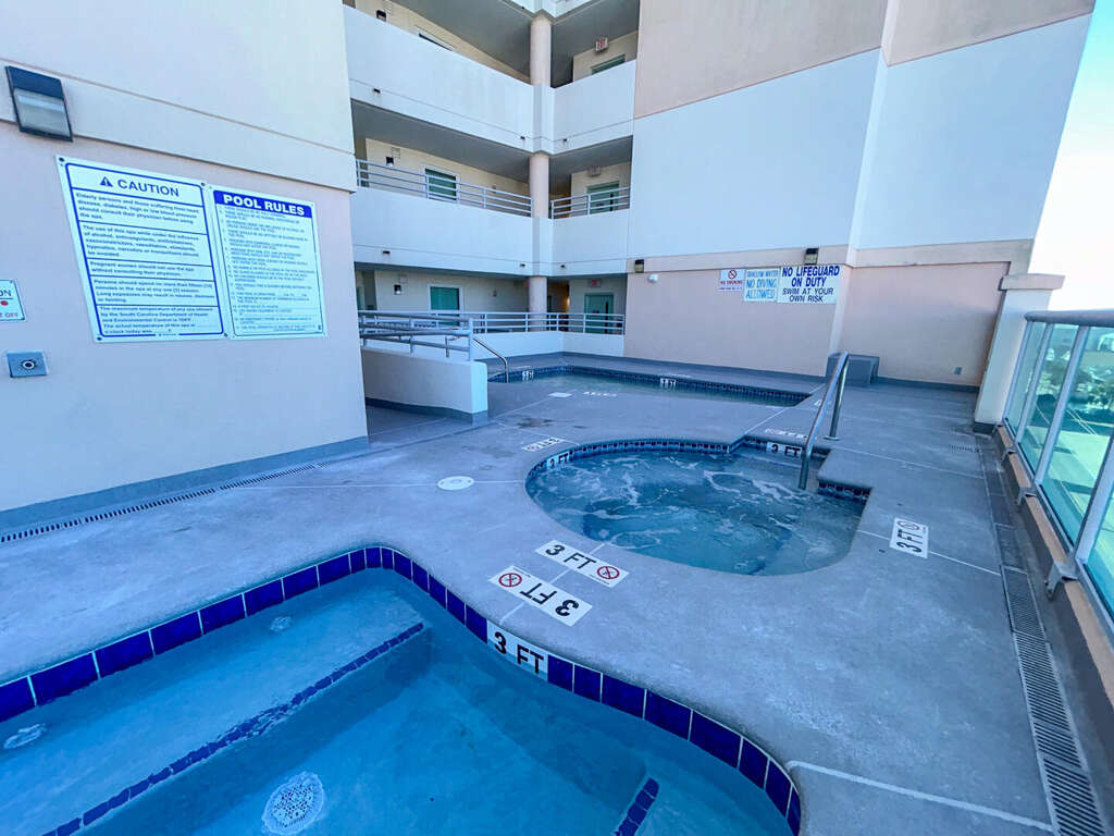 Laguna Keyes is a high rise located in the popular Cherry Grove section of North Myrtle Beach. Laguna Keyes is appointed with exceptional building amenities! On the ground floor is an oceanfront pool (which is securely gated), sundeck, indoor pool (heated seasonally), kiddie pool, outside shower, and direct access to the beach from the walkway at Laguna Keyes. There is an indoor seating area with direct access to the oceanfront patio area, for lounging, playing games, or just relaxing. There is also a lounging area on the streetside by the elevators. On the 6th floor, right outside of this rental, is the outdoor lazy river, and 2 hot tubs. A state of the art fitness center is located on the 2nd floor where you can work out while gazing at the ocean.