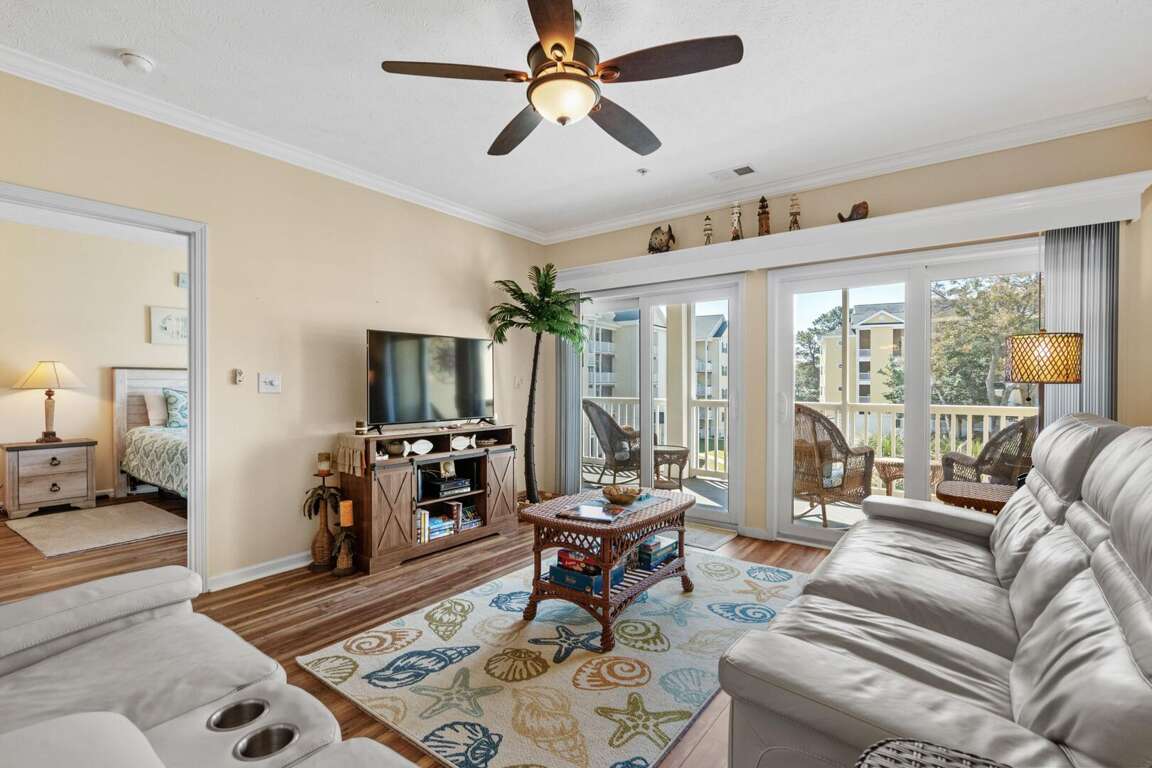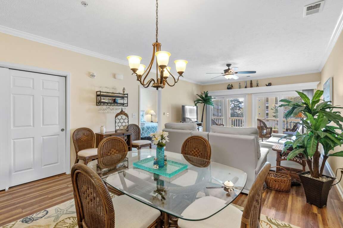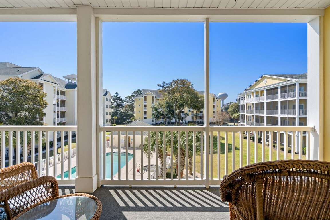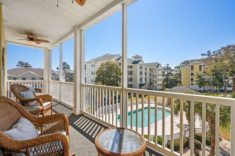 3 bedroom, 2 bath condo in gated community. Sleeps 6. King, Queen, 2 Twins. Pool view. 3rd floor. Elevator. Outdoor pool, hot tub, fitness center, tennis court, grilling area (gas grill). Golf cart allowed. No pets, motorcycles, smoking. No students/student groups. Must be 25 to rent.