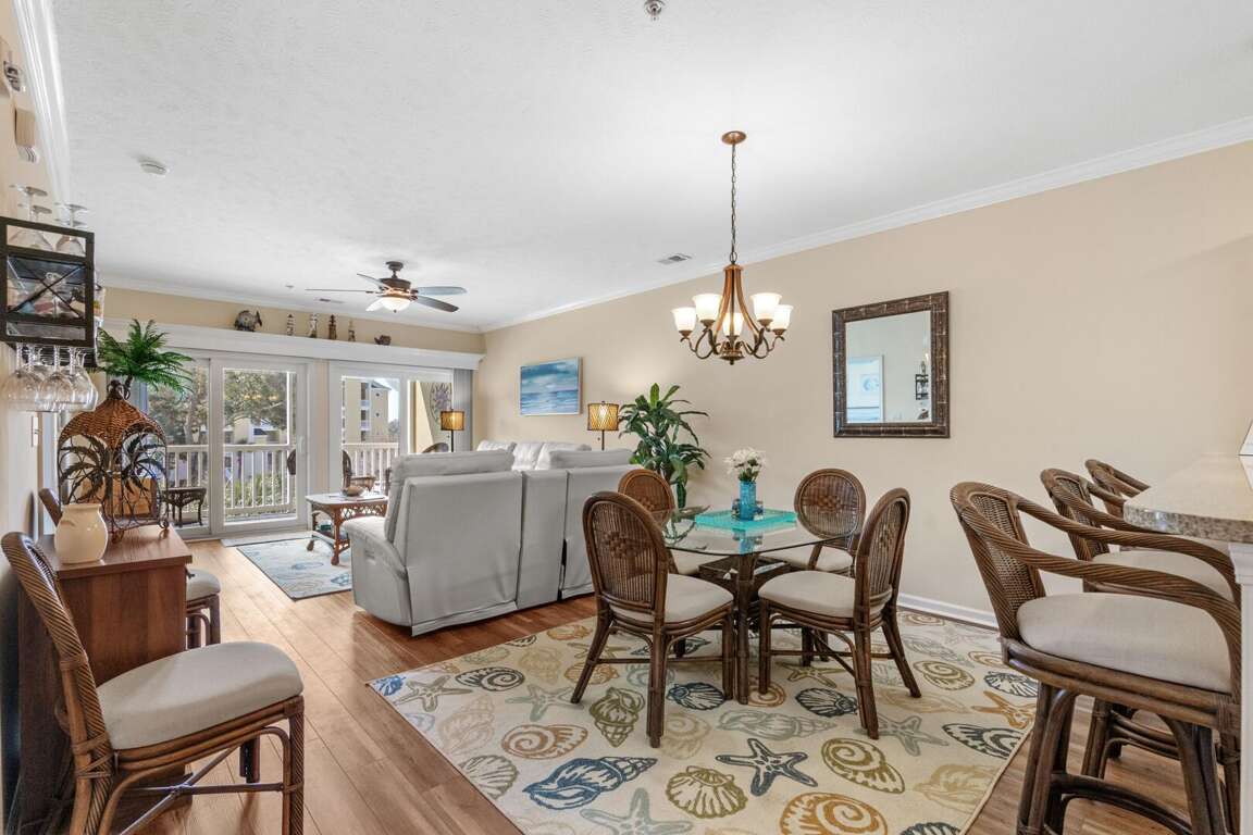 Ocean Keyes 1533 is a comfortably furnished 3 bedroom, 2 bath condo located in the gated community of Ocean Keyes in North Myrtle Beach. This 3rd floor condo sleeps 6 and has an elevator. The master bedroom has a king bed and balcony access. The master bath has a double sink and a tub/shower combination. The 2nd bedroom has a queen bed. The 3rd bedroom has 2 twin beds. There is a shower stall in the second bath. The spacious living area has a TV and opens onto the porch with a pool view. The kitchen is fully equipped with pots, pans, dishes, utensils, and all appliances needed to prepare a favorite meal. In the dining area is the table and chairs; bar stools are at the kitchen bar. A washer/dryer and free WiFi help complete this rental. There are ceiling fans in the living area, bedrooms, and balcony. There is no carpeting in this unit. The balcony porch is equipped with patio furniture for your relaxation.