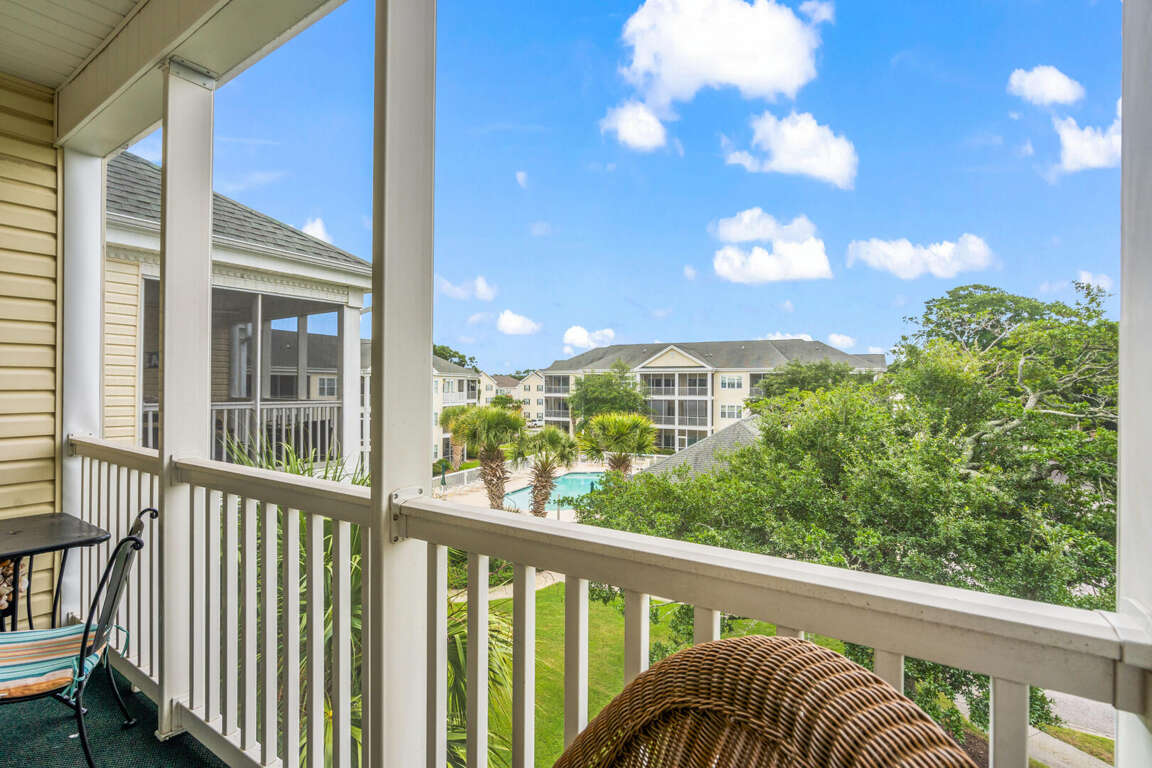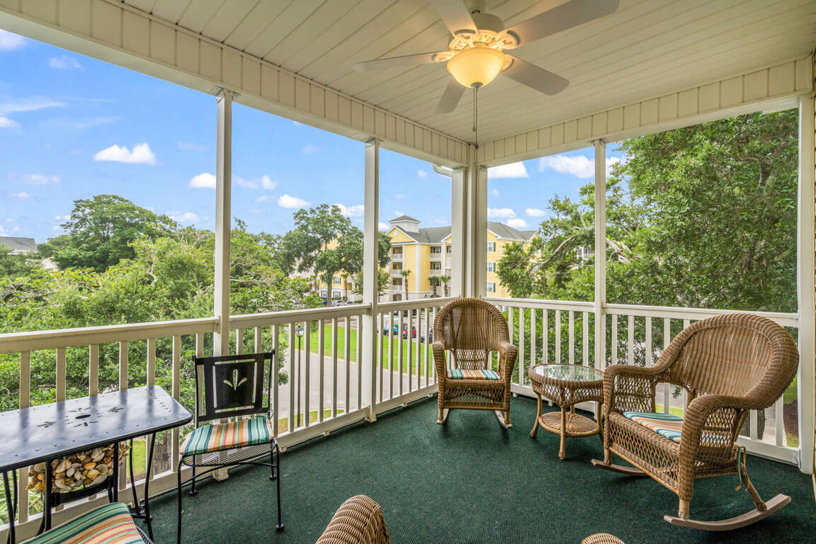 2 bedroom, 2 bath condo in gated community. Sleeps 6. 2 Queens, 1 queen sleeper sofa. 3rd floor walk-up. View of pool. Screened balcony. Outdoor pools, hot tubs, kiddie pools, grilling areas, tennis courts, fitness room with game room. Close walk to beach and Main Street Ocean Drive. No pets, motorcycles, smoking. Golf cart is not allowed by renters. Families only. No students/student groups. Must be 25 years of age to rent.