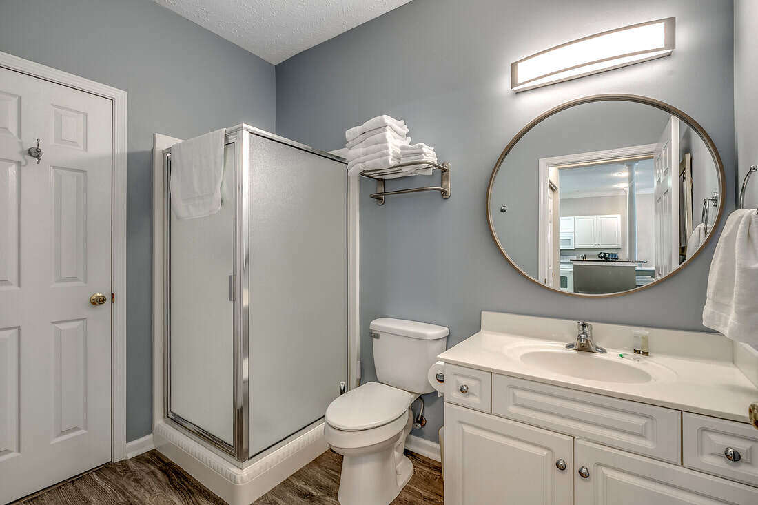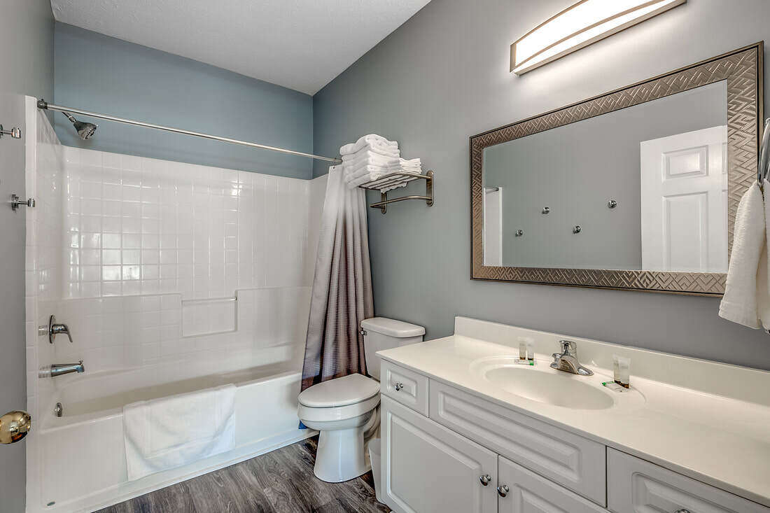 The JUNGLE BEDROOM has 2 Twin beds, double dresser, separate closet, 32 inch Smart TV, and opens to a full bathroom.