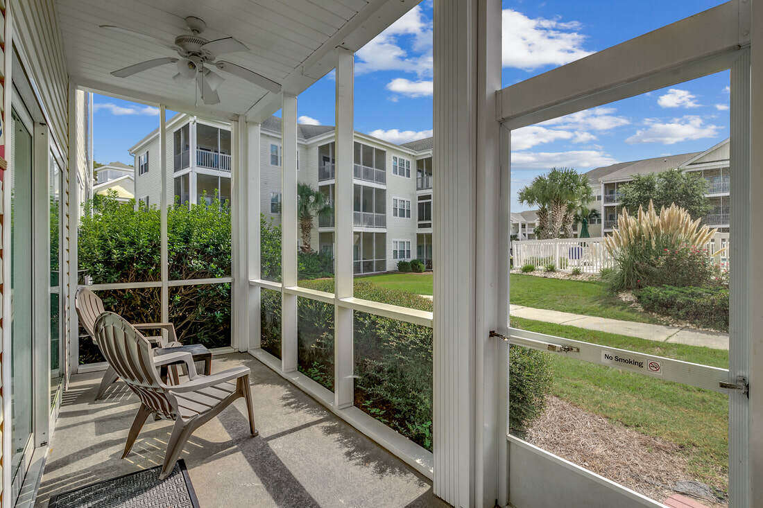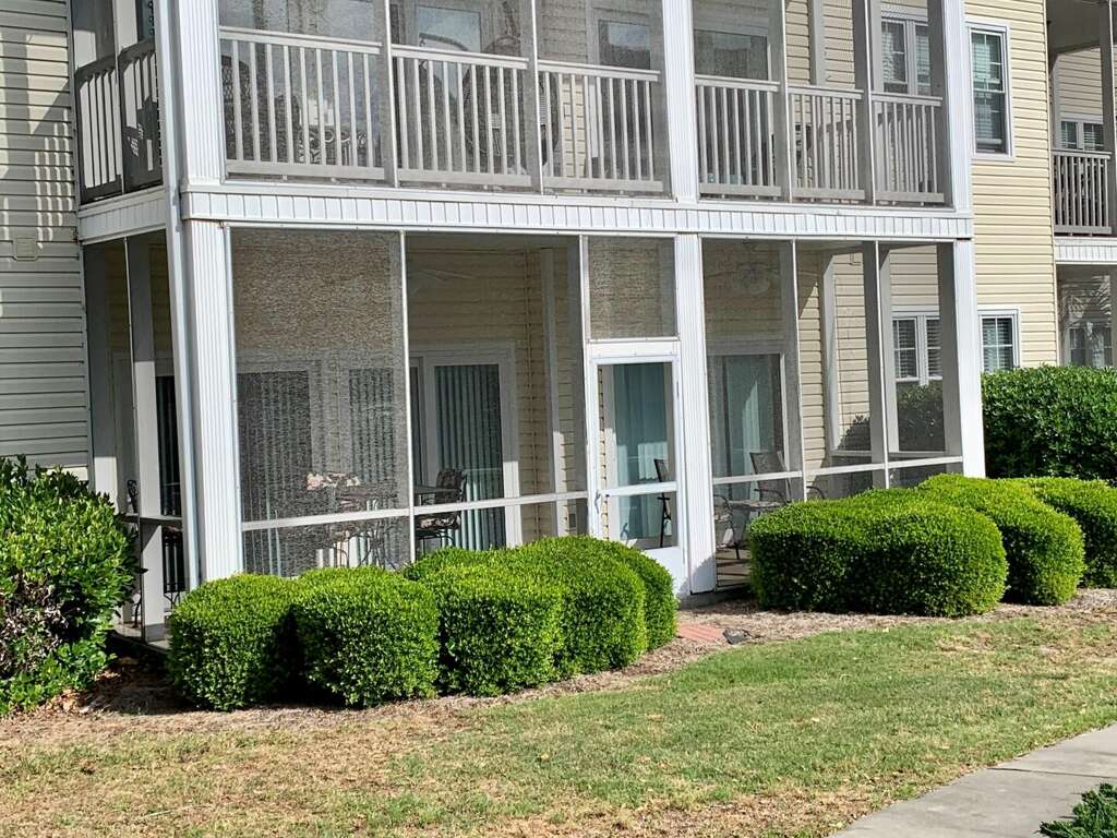 Main floor condo and steps away from the pool/rec room. 3 bedroom 2 bath 1st floor condo in gated community. Sleeps 8. Walking distance to beach. 2 queens, 2 twins, queen sleeper sofa, screened porch. Outdoor pool, grilling area, fitness and game room. No pets, no motorcycles, no smoking allowed. 2 parking passes. Golf carts not allowed.