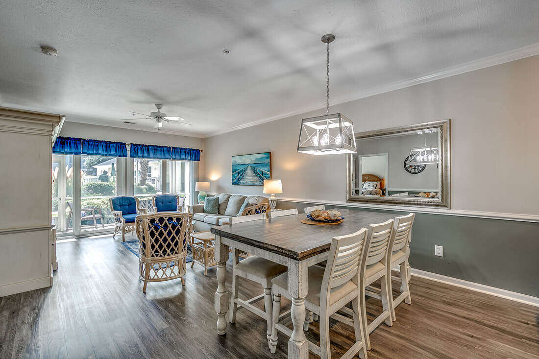 The DINING ROOM has a beautiful counter-top height table and seats up to 6 guests. There are also 3 bar stools as optional seating.