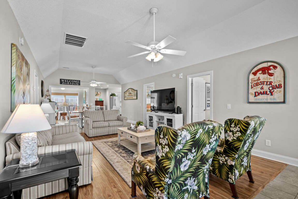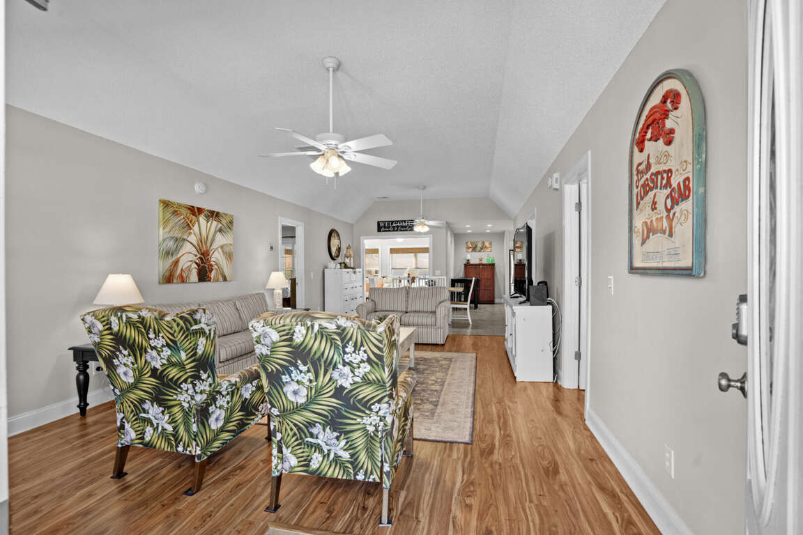 Why Not is a gorgeous and lovely decorated 4 bedroom/3 bath home located in the Cherry Grove section of North Myrtle Beach. This home is walking distance to the ocean and is in a perfect location to vacation. This North Myrtle Beach vacation rental comfortably sleeps 10. This home opens up into a beautiful open design with a living area, dining area, and kitchen. Enjoy the splendid enclosed sun porch for lounging, watching your favorite TV program, catching up with friends and family, or taking an afternoon nap. You're going to love it!