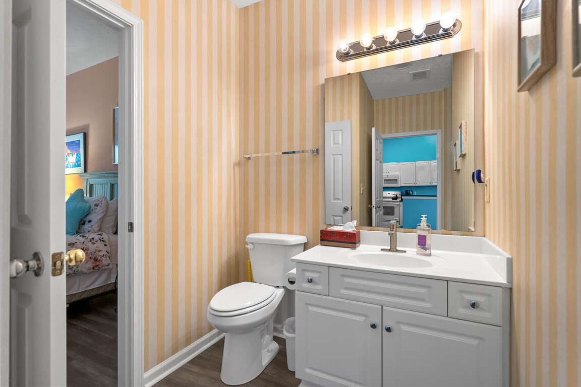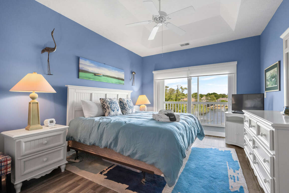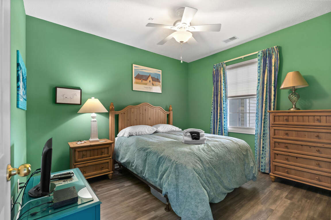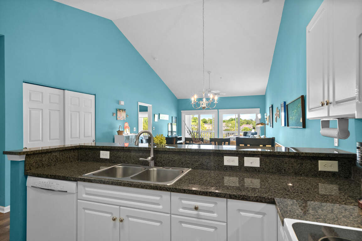 Ocean Keyes 3734 is located in the popular gated community of Ocean Keyes in the Ocean Drive section of North Myrtle Beach. This 3 bedroom 2 bath condo is on the 3rd floor, has an elevator, sleeps 6, and has a lake view from the screened porch. This condo has a master bedroom with a king bed, TV, balcony access, and a master bath with a tub and shower combination. The second bedroom has a double bed and TV. The third bedroom has 2 twin beds and TV. The second bathroom is located in the hallway with access also from the twin bedroom. This bathroom has a shower stall. Unit 3734 has a fully equipped kitchen, dining area with a table for six and two bar stools at the kitchen bar. This rental also comes with a washer/dryer and free WiFi.
