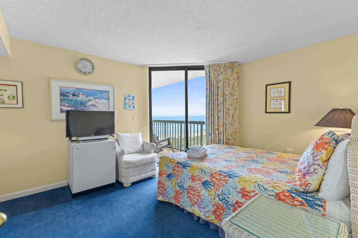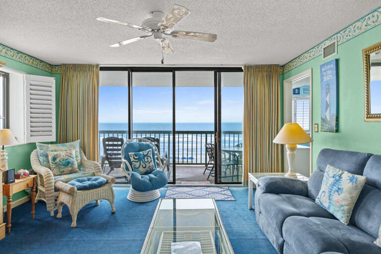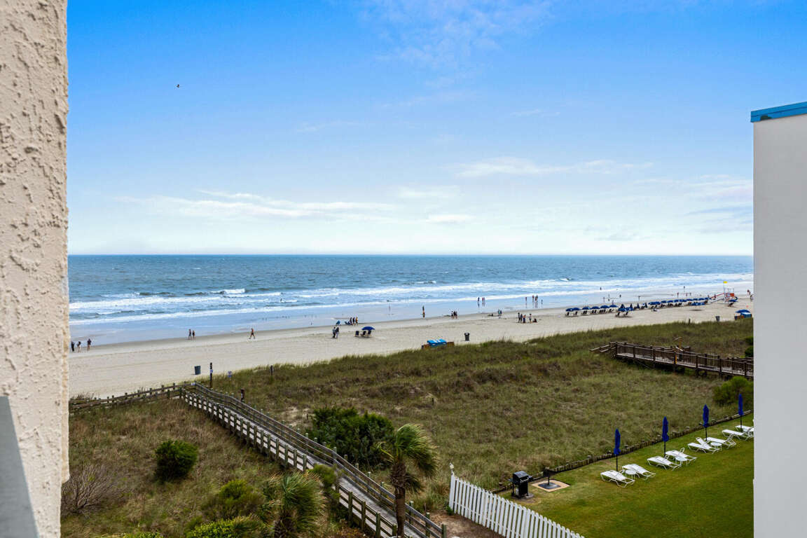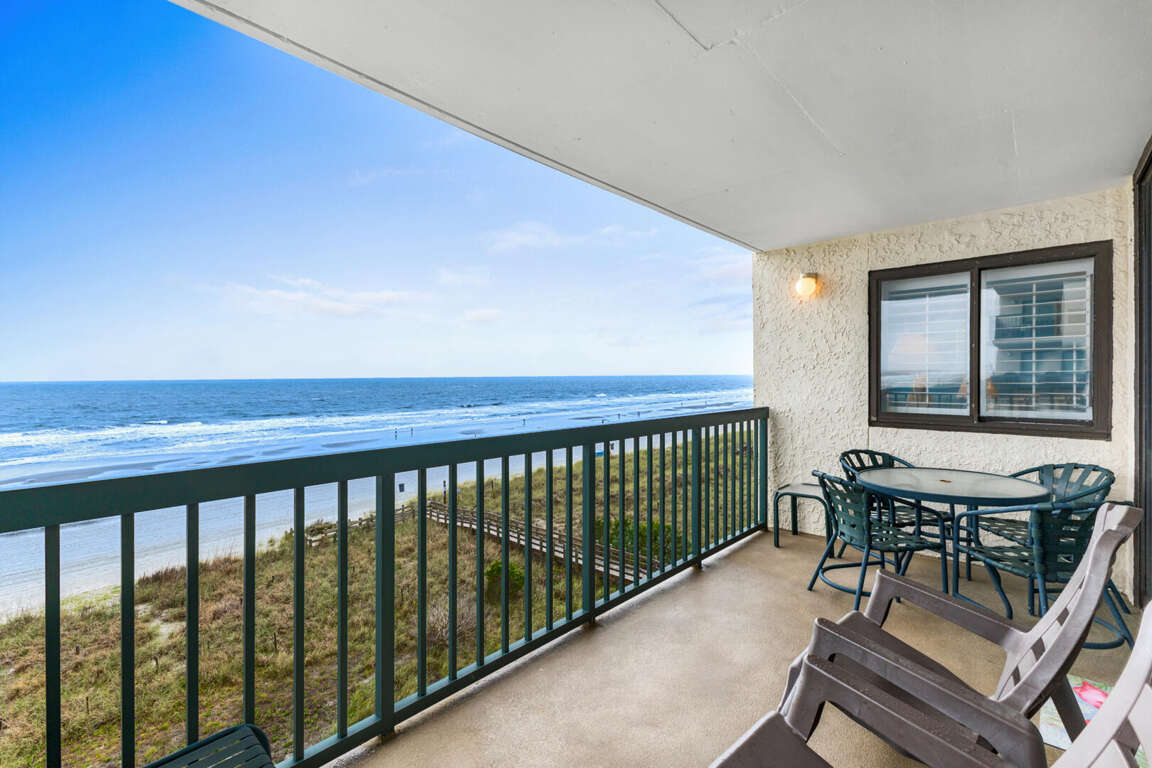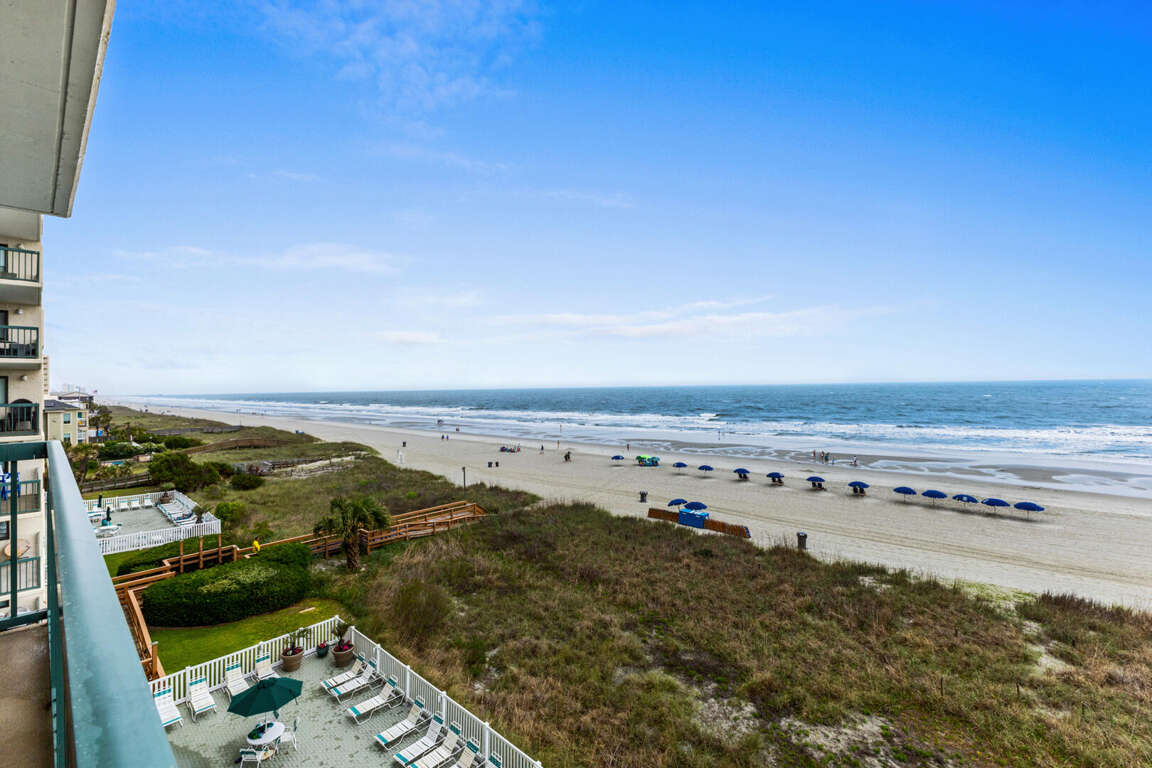 This bright and cheerfully decorated oceanfront rental comes complete with a fully equipped kitchen, dining area, and living area. The living area opens onto the oceanfront balcony where you can follow the shoreline for miles. Enjoy you morning with a fresh cup of coffee and the sounds of the tranquilizing ocean as you anticipate the beauty of the sunrise. Stroll along the seashore and look for that perfect seashell on the North Myrtle Beach shore. What a quiet comfortable setting to watch a stunning sunset as your day unwinds!