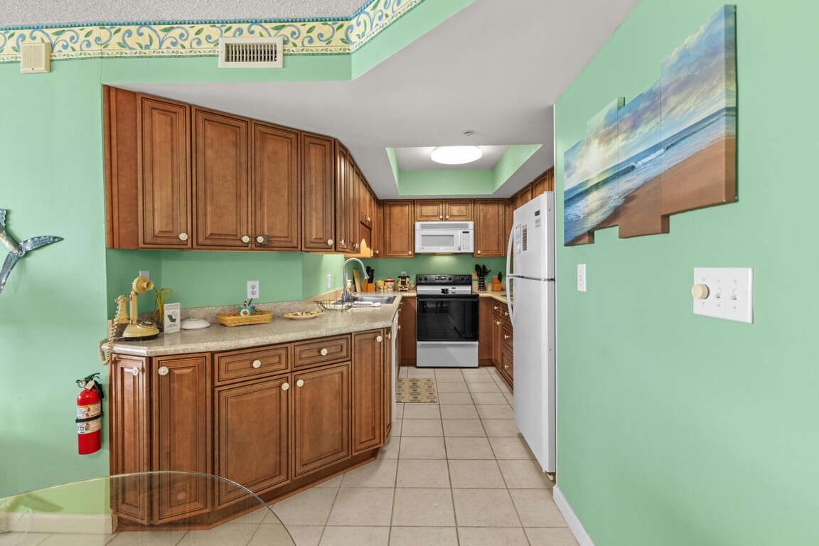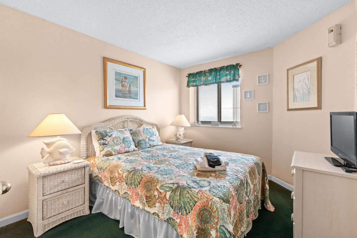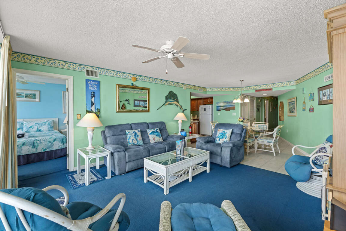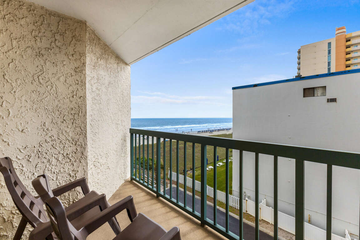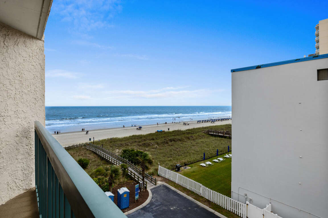 This bright and cheerfully decorated oceanfront rental comes complete with a fully equipped kitchen, dining area, and living area. The living area opens onto the oceanfront balcony where you can follow the shoreline for miles. Enjoy you morning with a fresh cup of coffee and the sounds of the tranquilizing ocean as you anticipate the beauty of the sunrise. Stroll along the seashore and look for that perfect seashell on the North Myrtle Beach shore. What a quiet comfortable setting to watch a stunning sunset as your day unwinds!