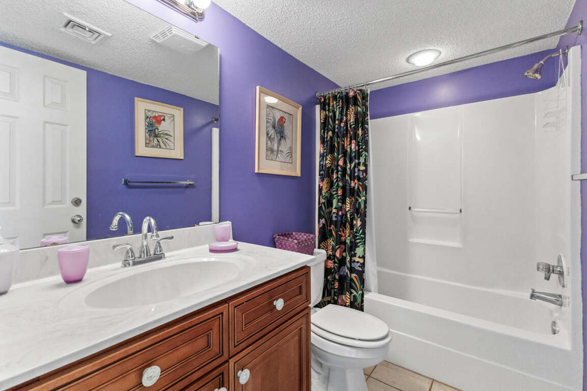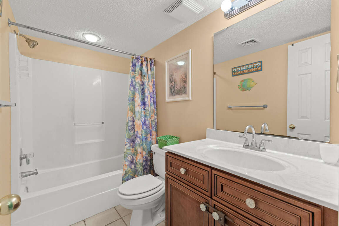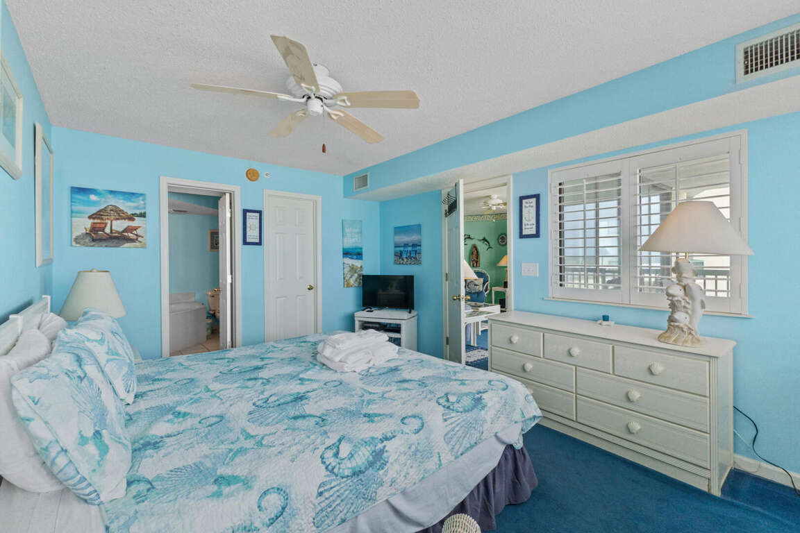 This rental oceanfront rental has a king bed in the master bedroom with a TV and master bath. The master bath has a jetted tub and a shower stall. The 2nd bedroom has a queen bed, TV, and a private balcony access. The 3rd bedroom has a queen bed and TV. Two twin beds and TV are in the 4th bedroom. A tub and shower combination are in the other 2 bathrooms. There are also free Wi-Fi, and a washer and dryer.