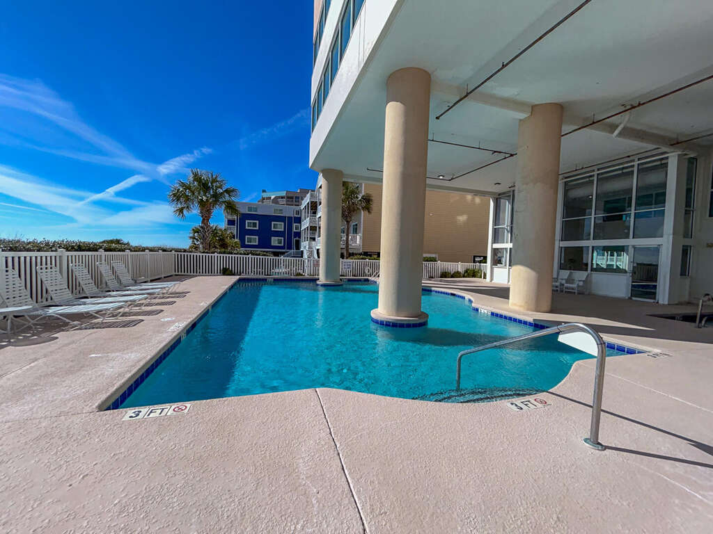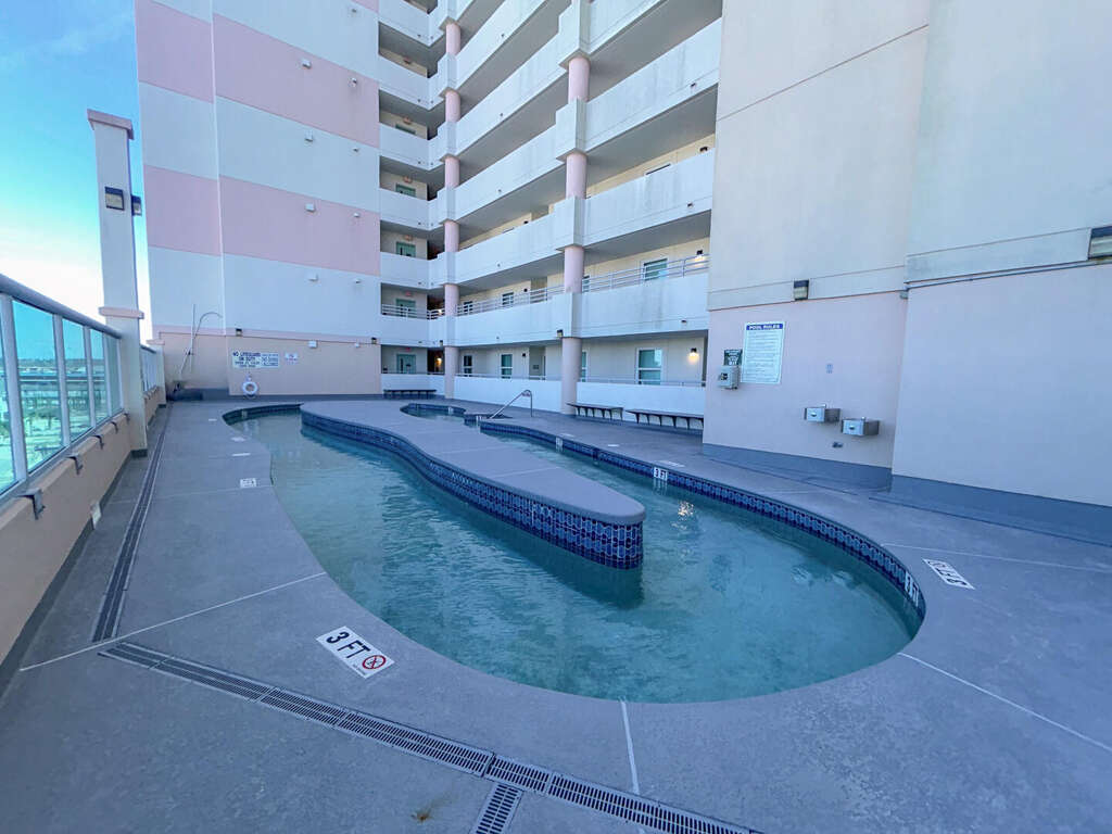 2 bedroom, 2 bath oceanfront property with an oceanVIEW. Sleeps 6. King bed, 2 XL twin beds, queen sleeper sofa. Outdoor pool, indoor pool, lazy river, hot tub, kiddie pool, fitness center. 2 parking passes. On-site parking. No motorcycles, trailers, golf carts. No pets. Non-smoking property. Families only. No students/student groups.