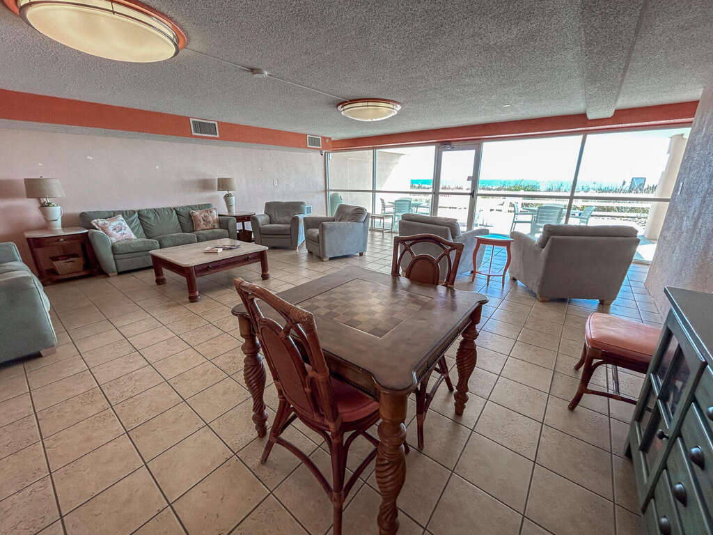 * Indoor oceanfront seating area with patio access