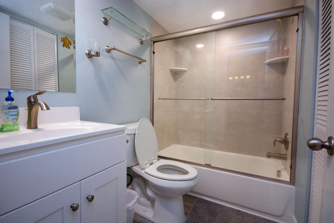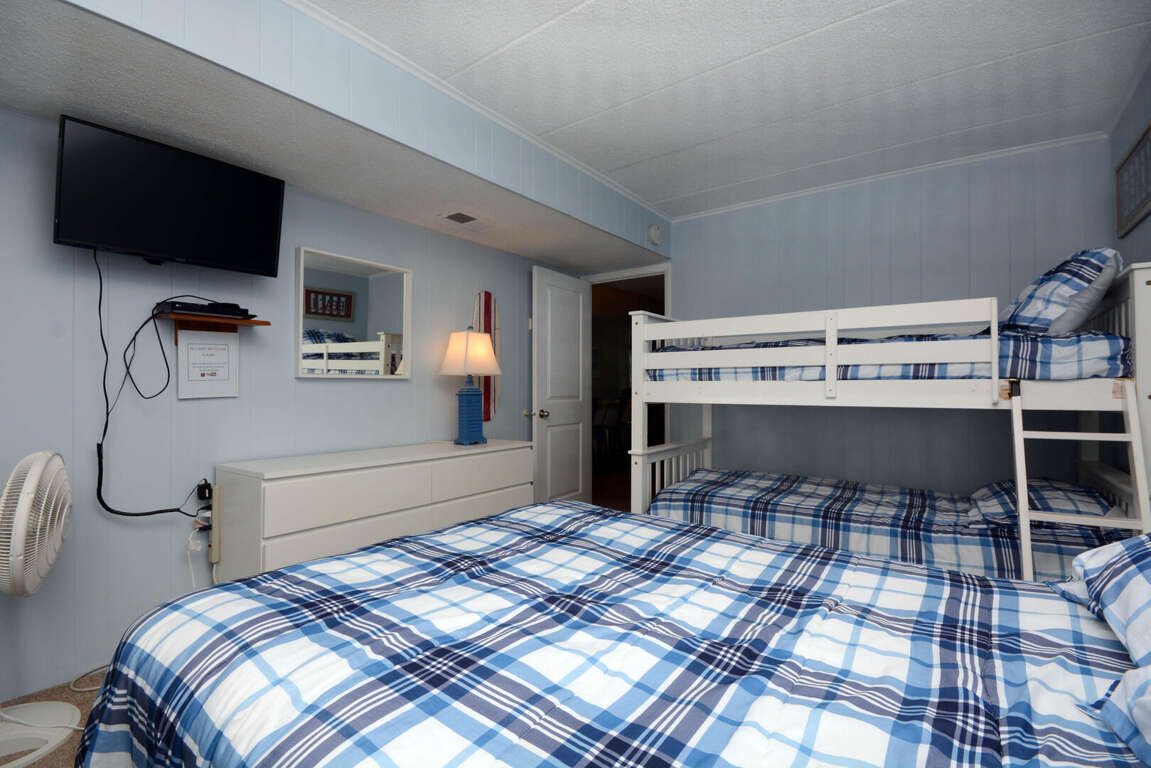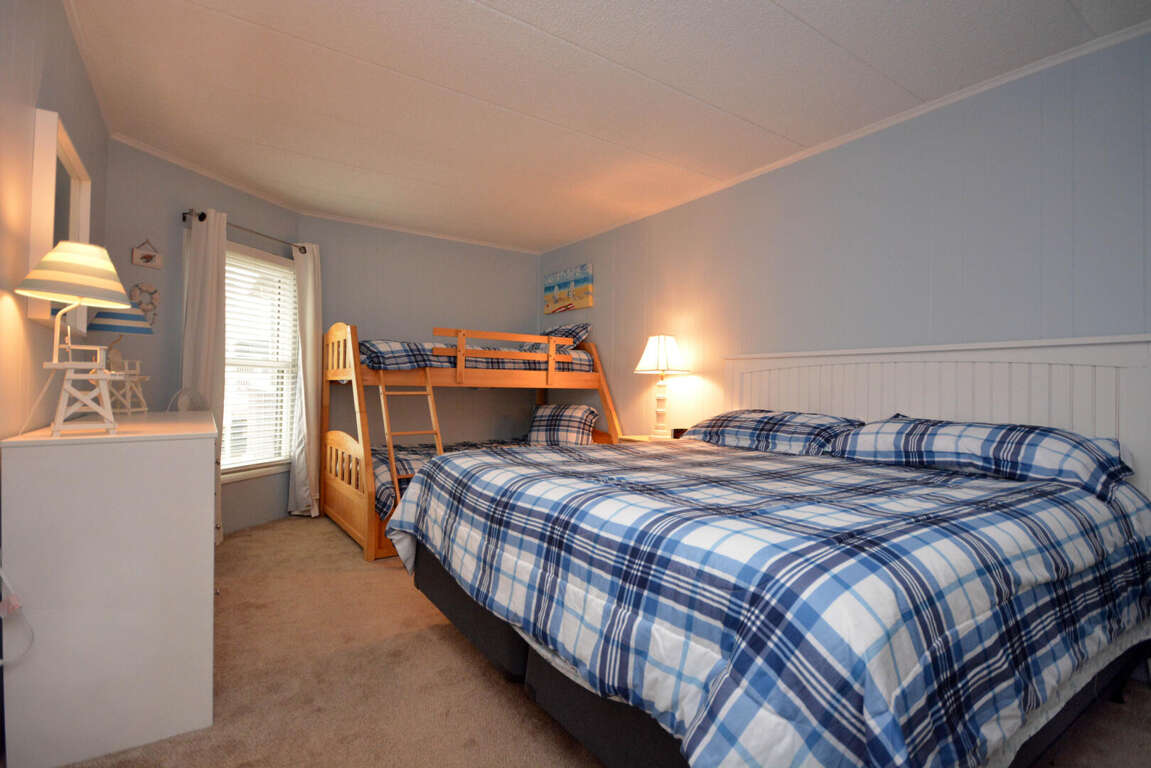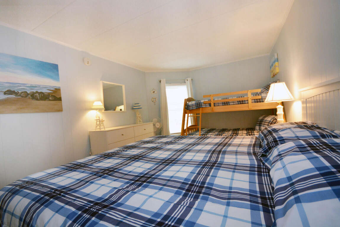 The cozy 2-bedroom Sea Terrace 106 condo in Ocean City, MD offers comfortable sleeping arrangements for up to 7 guests across its two bedrooms, complemented by two full bathrooms for added convenience. The room configuration includes a master bedroom with a queen bed, a second bedroom with a double bed and a twin-over-full bunk bed, and a queen sleeper sofa in the living room. This setup ensures ample space and privacy for all guests. The bathrooms layout consists of two full bathrooms, one being an en-suite to the master bedroom, providing accessibility and comfort. Whether getting ready for a day at the beach or winding down after a day of activities, the well-appointed bathrooms cater to the needs of all guests staying at Sea Terrace 106.