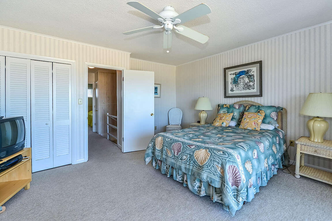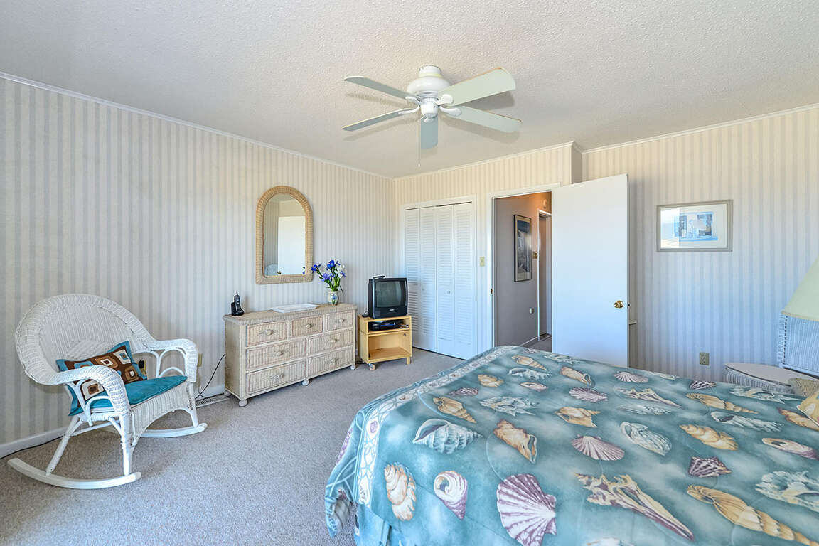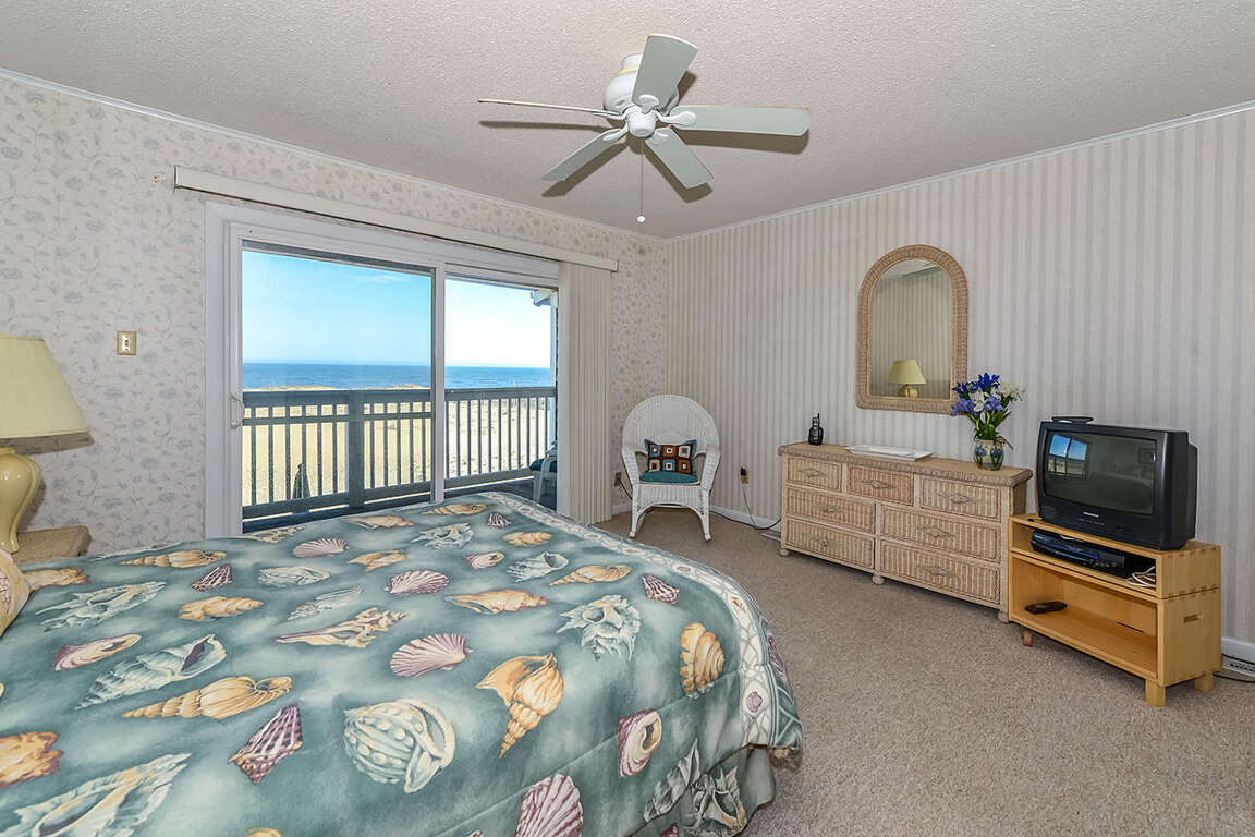 Within the tranquil retreat of Dune House 14 in Ocean City, MD, the bedroom accommodations present a harmonious blend of comfort and functionality for a relaxing stay by the coast.