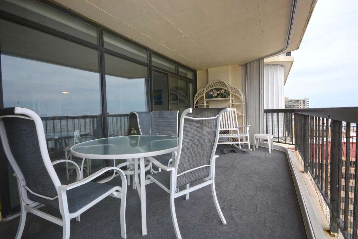 Enhance your stay in this Ocean City vacation condo with a thoughtfully designed interior boasting modern comforts and conveniences. The design inspiration of the living room offers a welcoming space with comfortable seating, a TV, and a queen-size sleeper sofa for relaxation. The furnished balcony provides stunning ocean views, perfect for unwinding. A well-appointed dining area sets the scene for family meals, complemented by a fully-equipped kitchen featuring a breakfast bar for convenience. The furniture arrangement throughout the condo maximizes space and functionality, ensuring a comfortable stay for guests. These interior amenities create a cozy and stylish atmosphere, enhancing the overall vacation experience in Irene 1806.