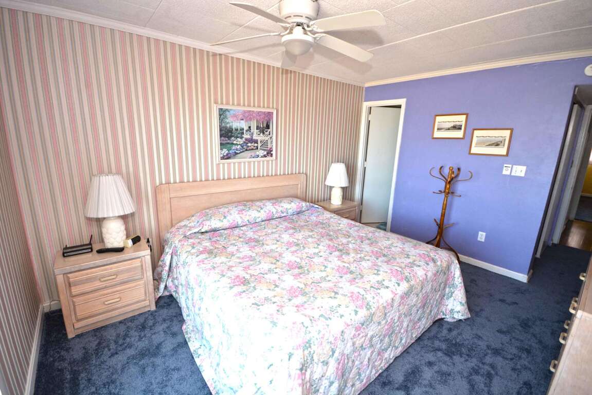 Highlighting the luxurious accommodations within Ocean Hideaway 301 Condo, the bedroom features offer a blend of comfort and style for a restful retreat by the ocean. The master bedroom is elegantly furnished with a king-size bed, granting ultimate relaxation. It boasts balcony access, perfect for unwinding with a view of the ocean, a TV for entertainment, and a private bath for added convenience. The second bedroom is ideal for families, featuring two queen-size beds, ensuring a comfortable stay for all guests. A hallway leads to the second bathroom, providing ample space and privacy. These family-friendly amenities create a welcoming atmosphere for up to 8 guests, where everyone can enjoy the tranquility and beauty of Ocean City.