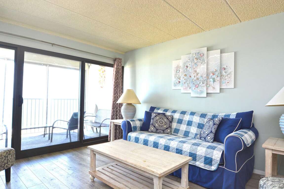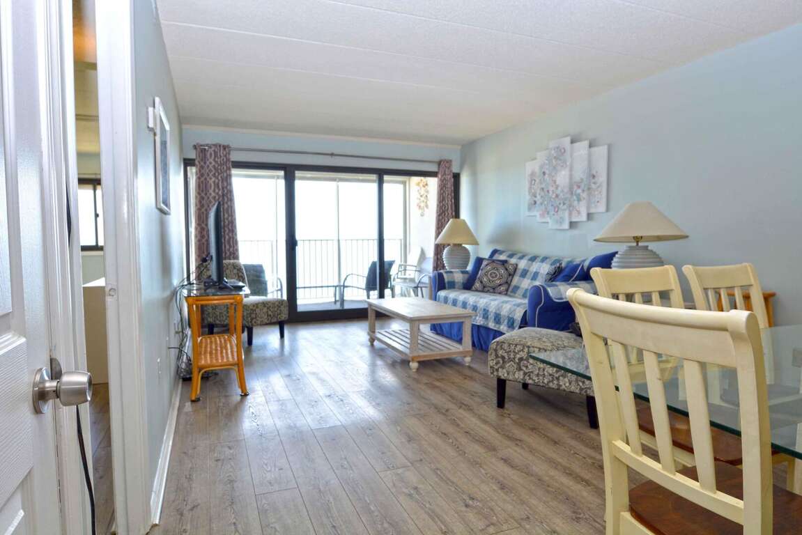 Located at 8203 Atlantic Avenue, the spacious 2-bedroom vacation condo offers a serene retreat with stunning oceanfront views and comfortable accommodations for up to 8 guests. This beachfront relaxation oasis provides family-friendly accommodations perfect for a memorable vacation experience. With its proximity to the beach, guests can enjoy the soothing sounds of the ocean and breathtaking sunsets right from the furnished balcony. The condo's layout is ideal for families, featuring a living room for relaxation and a dining room for family meals. The master bedroom, complete with a king-size bed and balcony access, ensures a comfortable stay. Embrace the tranquility of the ocean while creating lasting memories in this family-friendly vacation destination.