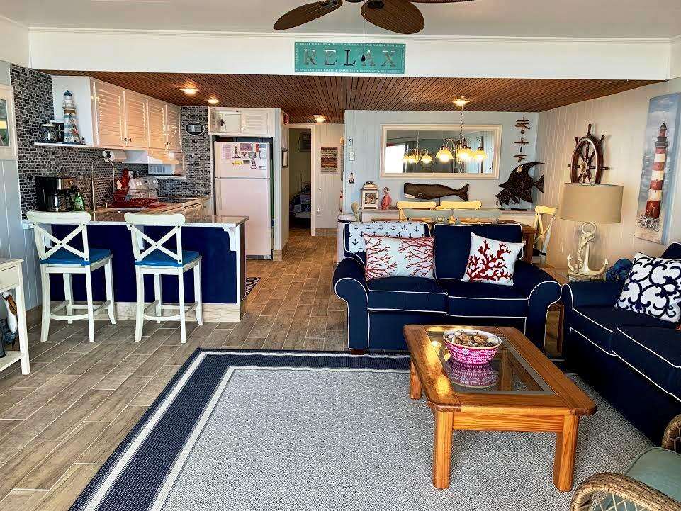 Nestled along 6803 Atlantic Avenue in Ocean City, Maryland, Beachloft 4E offers a charming 1-bedroom condo getaway that comfortably accommodates up to 6 guests. The interior design of this property has been recently renovated with a coastal theme, providing a fresh and airy atmosphere. Guests can enjoy the bright and spacious living room flooded with natural sunlight, complemented by a furnished balcony offering picturesque ocean views. The strategic location of Beachloft 4E provides numerous benefits, including easy access to the beach, nearby dining options, and entertainment venues. Whether relaxing indoors admiring the coastal-inspired decor or stepping outside to experience the vibrant surroundings, this property offers a perfect blend of comfort and convenience for a memorable stay in Ocean City.