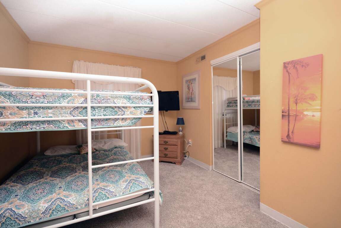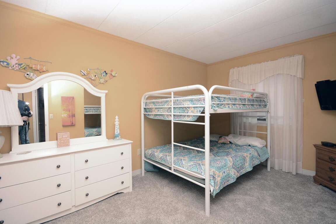 - Sleeping Arrangements: The condo features a queen bed in the first bedroom, a bunk bed with double mattresses in the second bedroom, and a queen sleeper sofa in the living room.