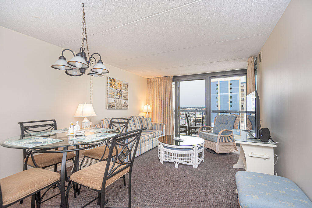 The interior of Sea Watch 1108 condo in Ocean City, Maryland, is designed to provide a comfortable and modern living space for guests enjoying their beach getaway. The living room boasts a neutral decor that creates a calming atmosphere, perfect for relaxation after a day at the beach. With a spacious layout, this condo offers plenty of room for guests to unwind and socialize. The fully equipped kitchen features elegant granite countertops, catering to all culinary needs. The master bedroom includes a luxurious king-size bed and a private bathroom, while the second bedroom offers a cozy queen-size bed. Additionally, a den provides extra sleeping space with a daybed and trundle, ensuring all guests have a restful stay.