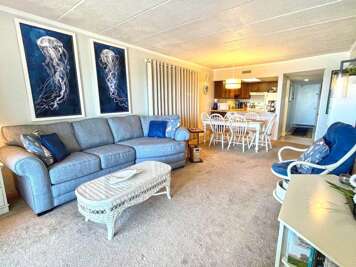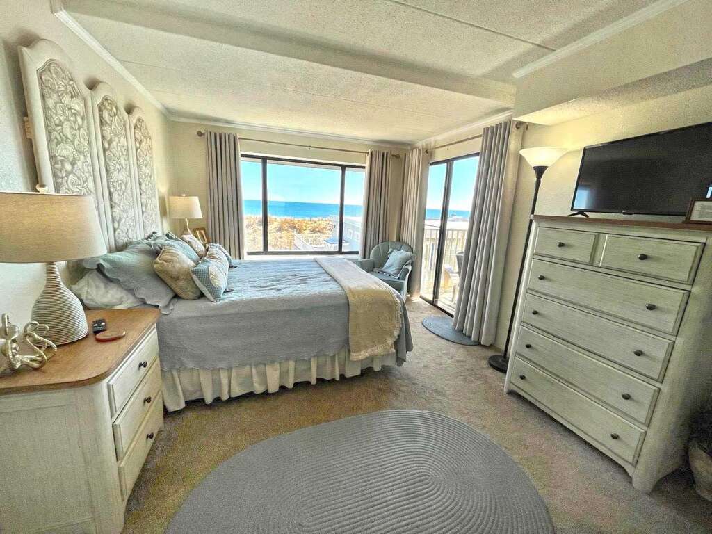 Nestled in a prime oceanfront location at 5 76th Street in Ocean City, MD, this stunning condo offers a tranquil retreat with two bedrooms, two full bathrooms, and a spacious living area perfect for accommodating up to six guests. The interior design exudes a unique charm, creating a cozy and inviting atmosphere for guests. Location perks include a spectacular ocean view, close proximity to the beach, and being situated in the quiet Midtown area, ideal for a peaceful getaway. Guests can enjoy the elegance of the decor while taking in the real sunlight streaming through glass doors and windows. This condo provides the perfect setting for a relaxing vacation with family or friends, ensuring a memorable stay in Ocean City, MD.