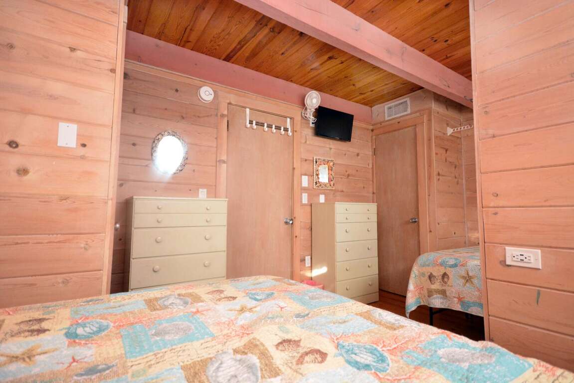 Located within the Beach Place 12 Townhouse Rental are a variety of accommodation features that cater to both comfort and convenience for guests seeking a relaxing beach getaway. The room decor exudes a cabin-like feel with charming wood paneling, creating a cozy and inviting atmosphere. Guests can enjoy direct beach access, allowing them to easily embrace the sun, sand, and surf just steps away from their rental. The townhouse offers 2 bedrooms and 2 full bathrooms, accommodating up to 6 guests comfortably. The master bedroom boasts a king-size bed, while the second bedroom features 2 queen beds, providing ample sleeping arrangements for families or groups. With these accommodation features, guests can unwind and make the most of their beach vacation experience.