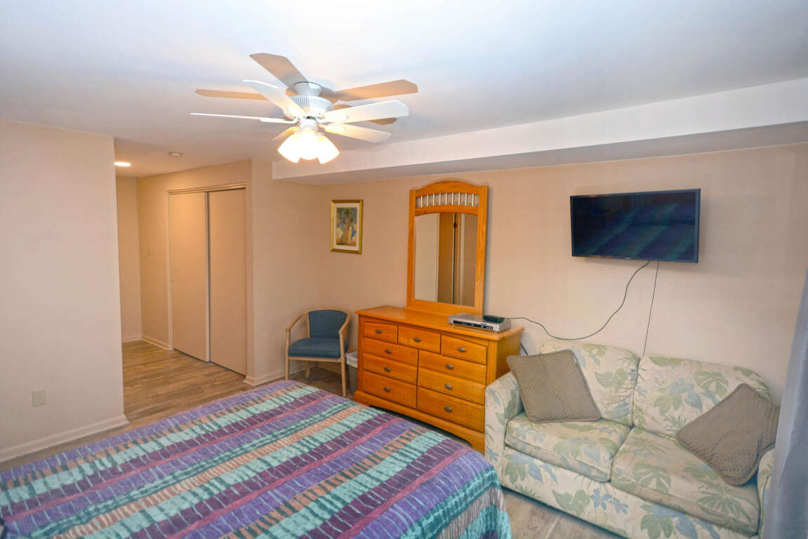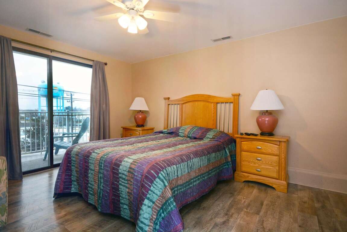 The bedroom details of Waves 304, a luxurious 2-bedroom condo located in Ocean City, Maryland, offer an inviting and comfortable retreat for guests seeking a relaxing stay near the beach. The master bedroom boasts a queen-size adjustable remote bed, allowing guests to customize their sleeping experience for optimal comfort. In the second bedroom, a unique pyramid-shaped twin-sized bed adds a touch of character to the space. Both bedrooms are equipped with adjustable speed ceiling fans, providing a cool and soothing atmosphere for a restful night's sleep. With these thoughtful features, Waves 304 can accommodate up to 9 people comfortably, ensuring a tranquil and rejuvenating stay for all guests.