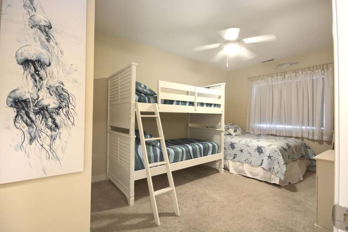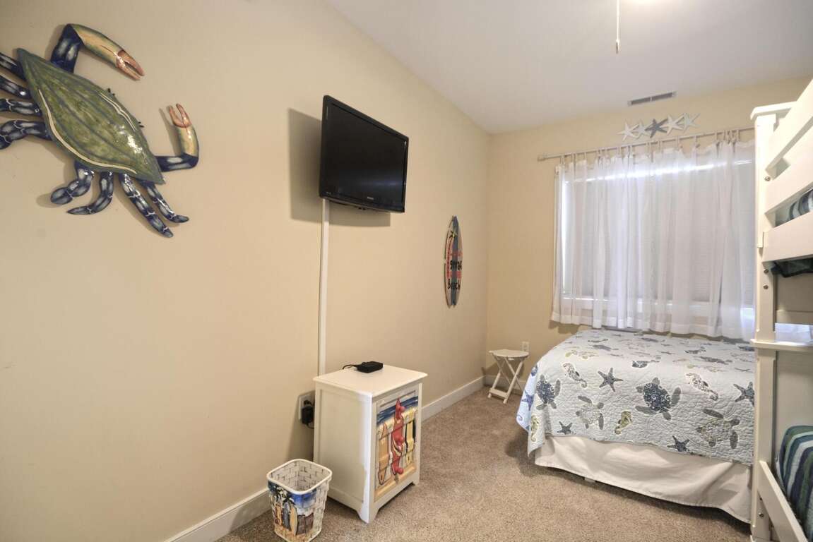 Effortlessly blending comfort and style, the bedroom layout and configuration of Mariners Watch 403 offer a luxurious retreat for up to twelve guests in Ocean City, Maryland. The interior decor of the bedrooms exudes elegance and sophistication, providing a serene atmosphere for a relaxing stay. The master bedroom boasts a king-size bed with balcony access, while the second bedroom features another king-size bed and a separate bathroom for added privacy. The third bedroom is furnished with two queen-size beds, ideal for guests seeking extra space. For larger groups or families, the fourth bedroom includes two bunk beds, accommodating additional guests comfortably. With carefully thought-out sleeping arrangements, Mariners Watch 403 ensures a restful and enjoyable stay for all visitors.