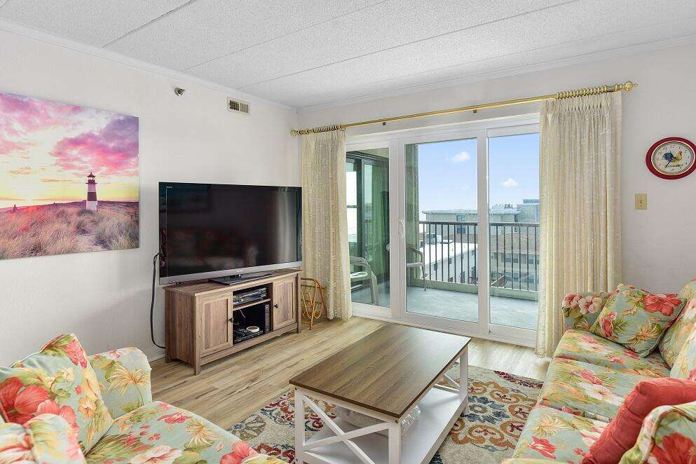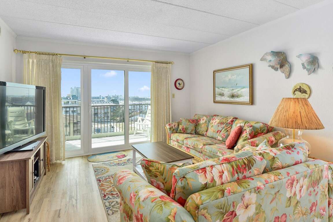 Enhance your stay at the stylish 2-bedroom condo in Ocean City, MD with a range of well-appointed amenities designed to elevate your vacation experience. The interior design of the condo features a comfortable living room with a loveseat and flat-screen TV, perfect for relaxing after a day of leisure activities. Enjoy family meals in the dining area or unwind on the private balcony flooded with natural light. For convenience, there is an outdoor footshower available. The condo is thoughtfully furnished to provide a welcoming atmosphere, with modern amenities to ensure a comfortable stay. Whether you're looking to relax indoors or engage in outdoor leisure activities, this condo offers the perfect blend of style and functionality.