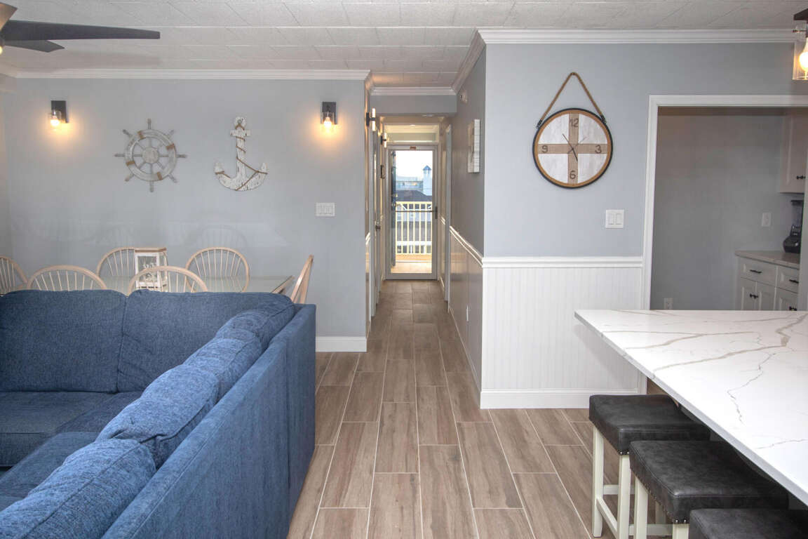 In this property overview, guests will find a charming vacation rental at Calypso 402 in Ocean City, Maryland, boasting 2 bedrooms and 2 full bathrooms, ideal for accommodating up to 8 guests comfortably. The interior design of the rental is tastefully done, featuring a new kitchen and dining area for 6, engineered flooring, and ceiling fans. The living space spans 1056 sqft, offering a cozy retreat by the beach. Calypso 402 is strategically located near various attractions, ensuring guests have easy access to entertainment options and dining establishments. With a beachfront location and proximity to nearby attractions, this vacation rental provides an ideal setting for adults and families looking to enjoy a relaxing getaway in Ocean City, Maryland.