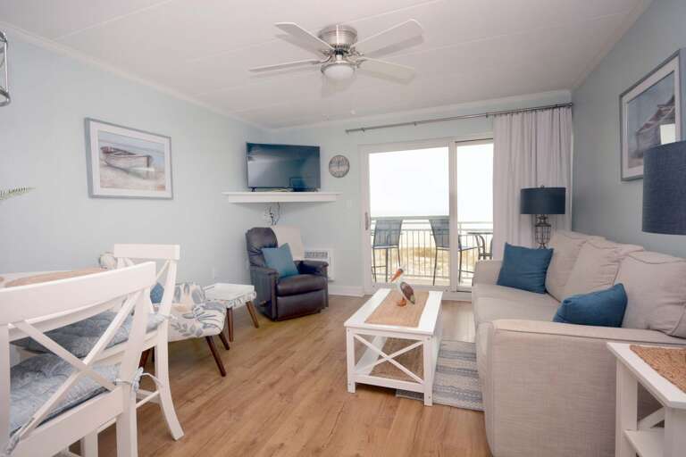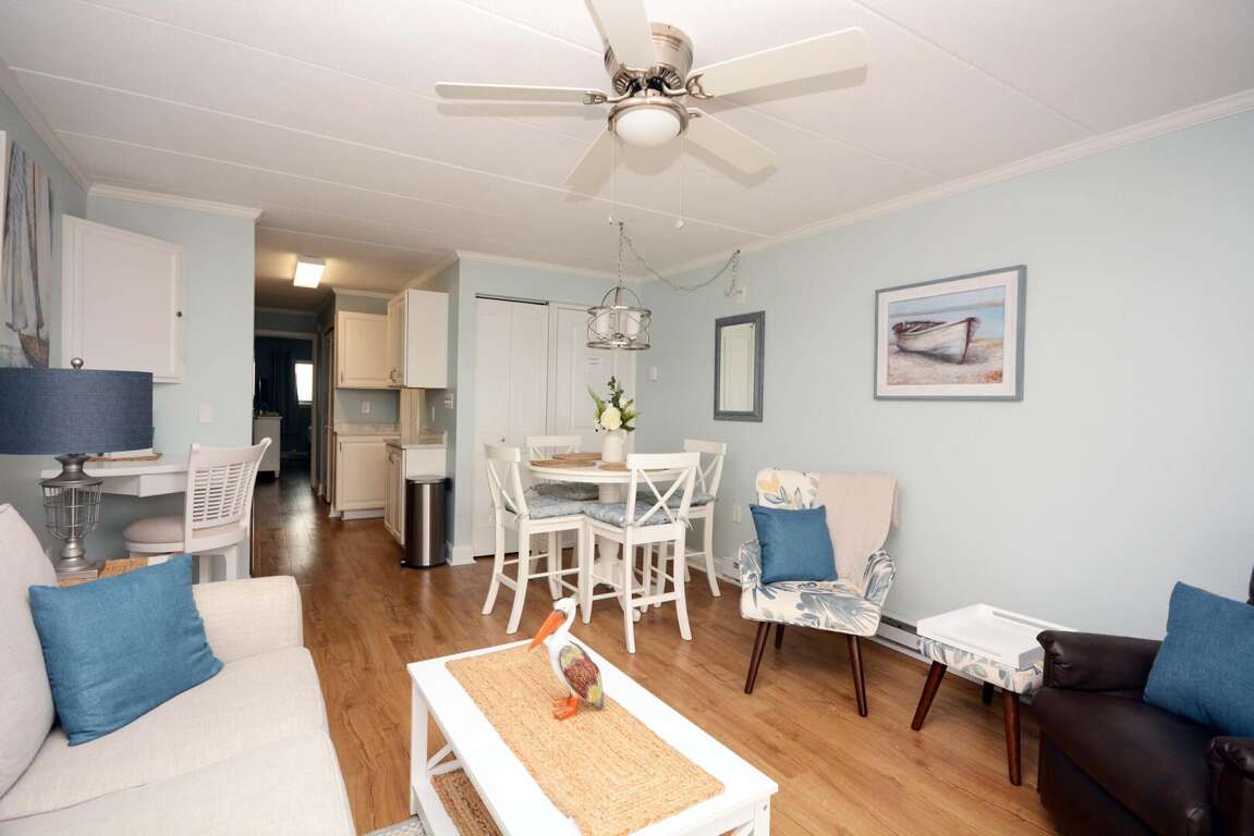 What key features distinguish Worcester House 304 as an ideal vacation condo located at 5101 Atlantic Avenue in Ocean City? This newly renovated oceanfront condominium offers family-friendly accommodations, making it perfect for week-long stays. The interior has been recently updated, providing a fresh and modern atmosphere for guests. With a spacious 670 sqft layout, this condo includes 1 bedroom that sleeps 4, 2 full bathrooms, and 1 half bathroom, ensuring comfort and convenience for all occupants. The sleeping arrangements feature a king bed in the bedroom and a queen sleeper sofa in the living room. Worcester House 304 is designed to offer a home-like feel, making it an excellent choice for families seeking a relaxing and enjoyable vacation experience.