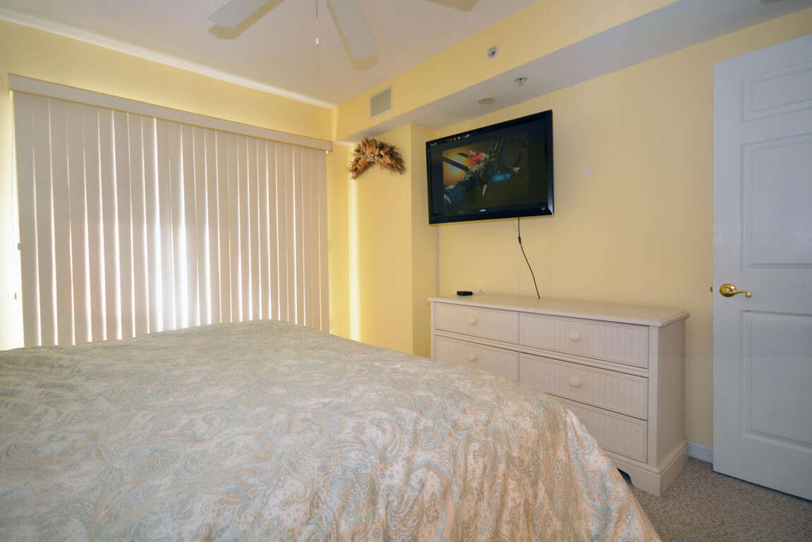The bedrooms in Surf Watch 401 are thoughtfully designed to provide comfort and privacy for guests during their stay. Each room boasts tasteful bedroom decor, creating a cozy and inviting atmosphere for relaxation. The master bedroom features a luxurious king-size bed, a TV for entertainment, a private bathroom for convenience, and balcony access for stunning views. The second bedroom offers a comfortable queen-size bed and a personal TV, ensuring a restful night's sleep. The third bedroom is perfect for accommodating multiple guests with two twin beds. Additionally, the living room includes a queen sleeper sofa, providing extra sleeping arrangements. These sleep arrangements cater to the needs of up to eight guests, making this condo ideal for families or groups.