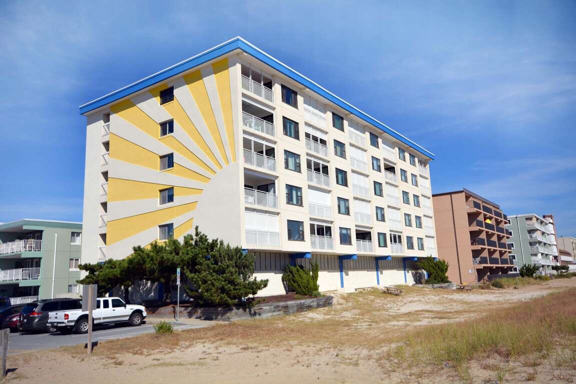 The exterior amenities of the luxurious 2-bedroom condo at Mooring 103 in Ocean City, MD, offer a blend of convenience and relaxation for guests seeking a premium accommodation experience.