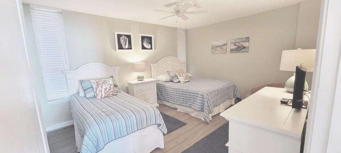 Boasting a coastal-inspired ambiance that seamlessly blends comfort with charm, the interior decor and design of this spacious 2-bedroom condo in Ocean City, Maryland, creates a welcoming retreat for guests seeking a relaxing beach getaway. The condo's coastal decor evokes a sense of tranquility with soothing blue hues, beach-themed accents, and natural textures that mimic the seaside environment. The room layout suggestions encourage a cozy atmosphere for families or groups of friends, with a well-appointed living room featuring a queen sleeper sofa, a master bedroom furnished with a king bed, and a second bedroom offering a double and twin bed arrangement. Guests can unwind in style amidst this thoughtfully designed space, offering both relaxation and coastal elegance.