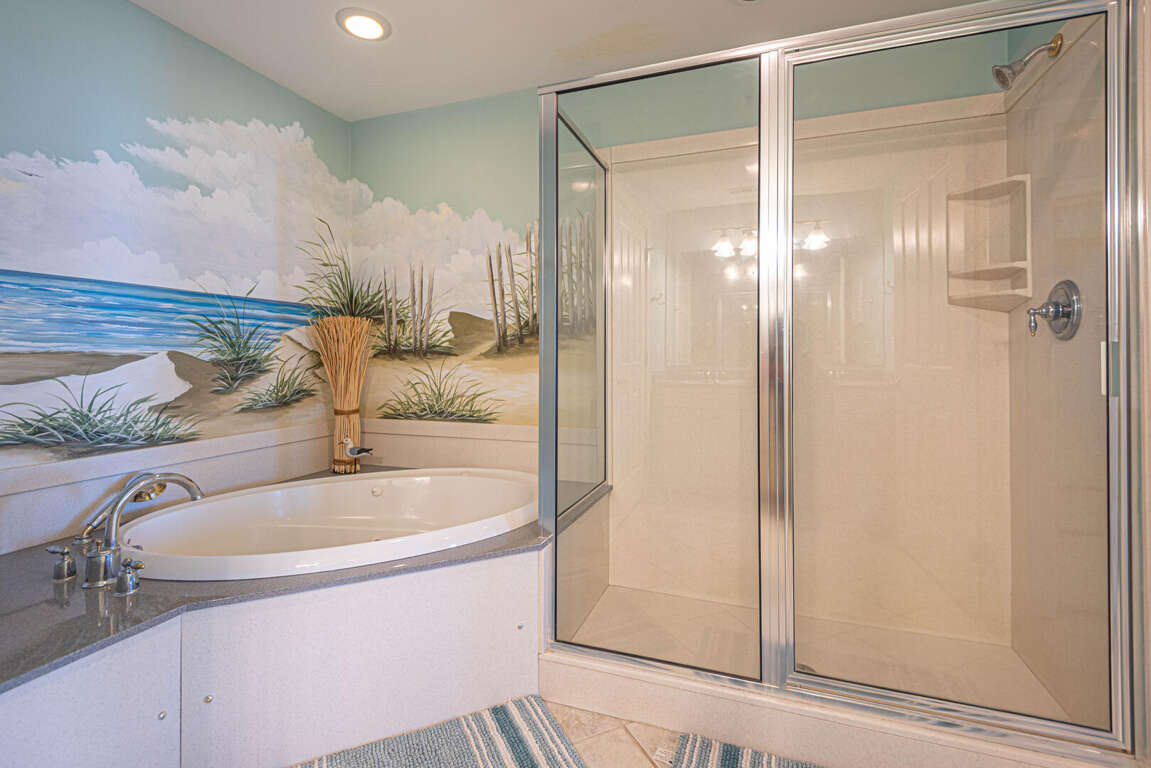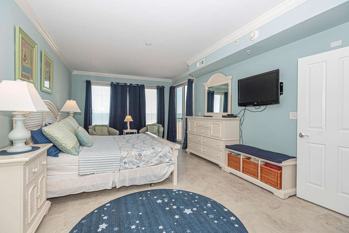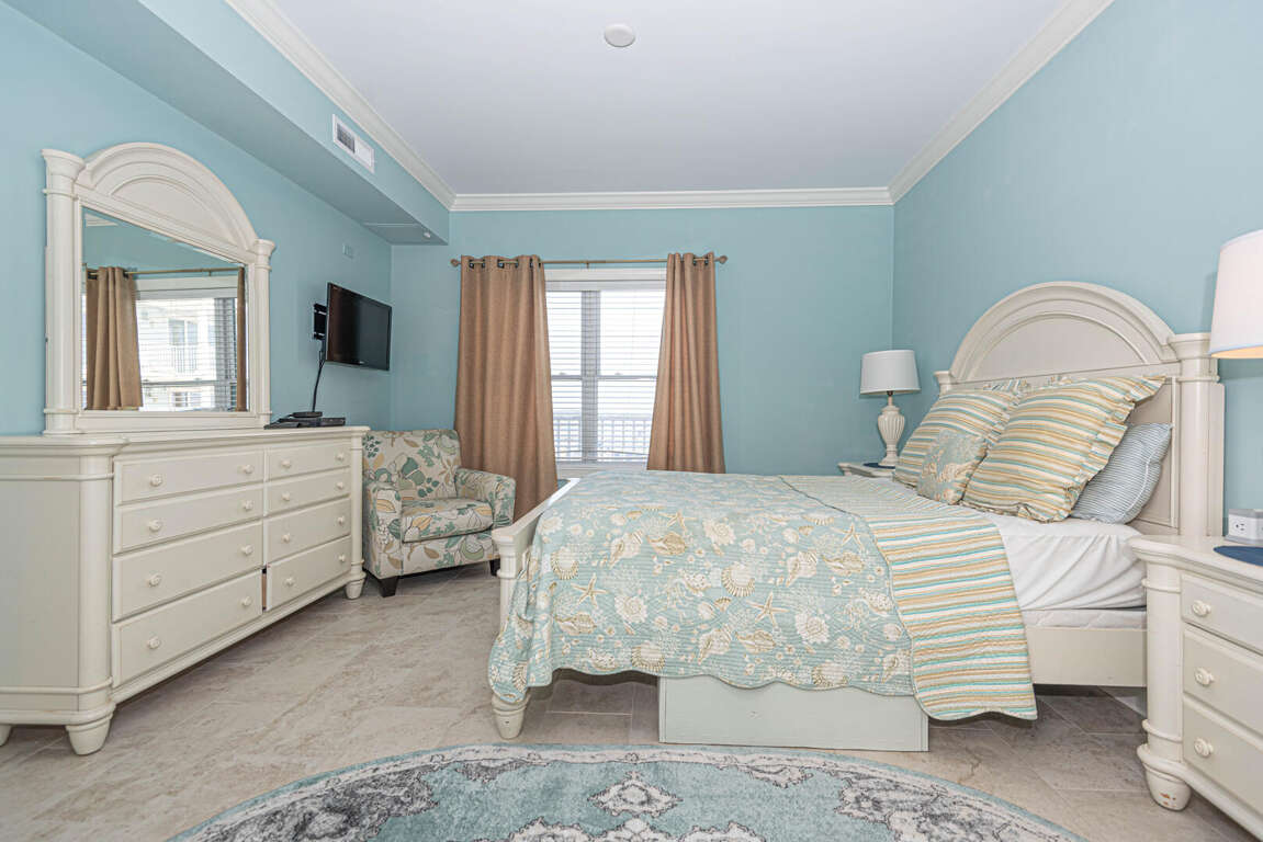 Continuing the exploration of the luxurious condo at Belmont Towers 602, the bedroom details and amenities offer a harmonious blend of comfort and functionality, ensuring a restful and indulgent stay in Ocean City, MD. The second bedroom boasts a pyramid-shaped bunk bed with trundles, perfect for kids or additional guests, while the third bedroom features a cozy queen-sized bed and an attached bathroom for added convenience. All bedrooms are equipped with flat-screen TVs for entertainment. The master bedroom provides stunning ocean views, a spacious king-sized bed, and a luxurious walk-in tub. Whether enjoying the ocean views or the comfort of the bunk bed options, guests are treated to a relaxing retreat in this upscale condo.
