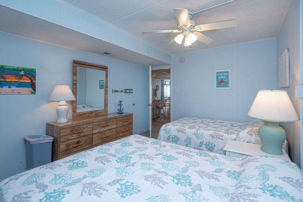 The bedroom configuration at Sea Terrace 1204 in Ocean City, MD offers a comfortable and versatile sleeping arrangement for guests seeking a relaxing stay by the beach. The master bedroom is equipped with a queen-sized bed and a single bed, providing a cozy retreat for a small family or a couple. The second bedroom features a queen-sized bed and a double bed, accommodating additional guests comfortably. For added flexibility, the living room is furnished with a daybed and a double bed, ensuring ample sleeping options for larger groups. With these bedding options and sleeping arrangements, guests can enjoy a peaceful night's rest after a fun-filled day exploring Ocean City.