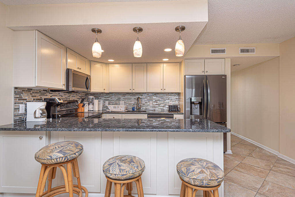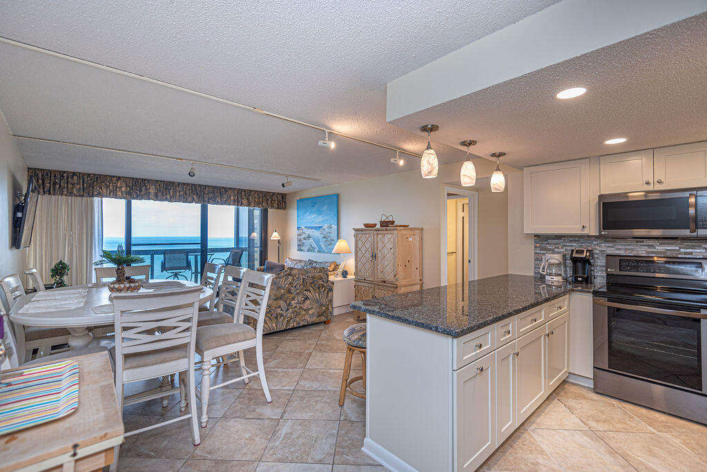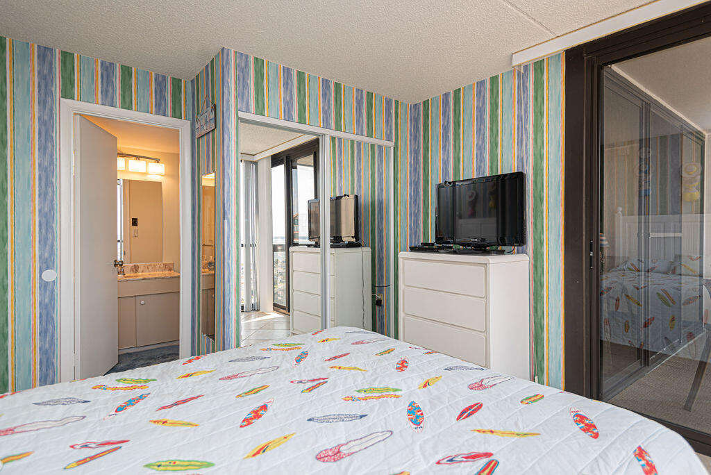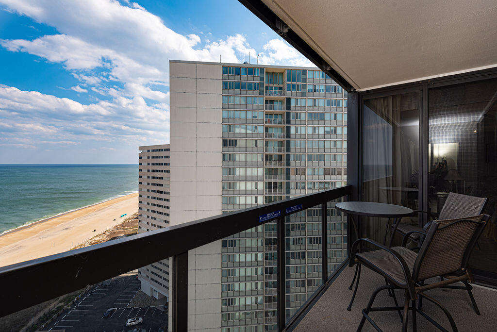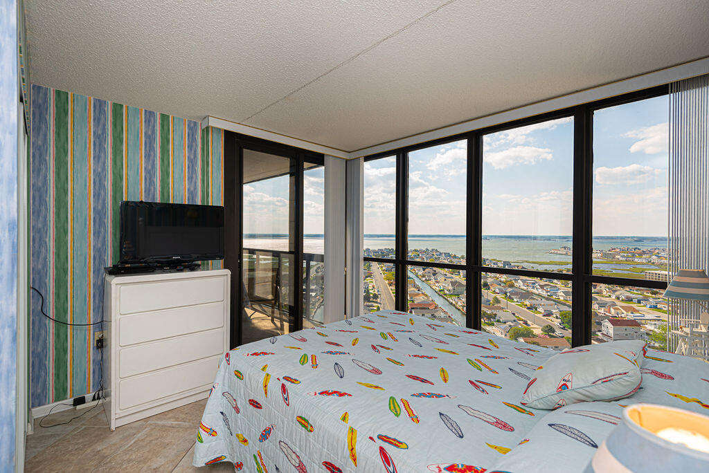 Golden Sands 1814 is a modern remodeled ocean font condominium. This three-bedroom, three full bathrooms beautifully furnished condo has two furnished balconies one oceanfront and one bayfront with a spectacular view of the ocean and sunset in the evening. The spacious oceanfront living room has a flat screen tv and a sofa and love seat for viewing the ocean or the wall mounted flat screen tv. Adjoining the living dining area is the remodeled kitchen with an attached granite top breakfast bar. The ocean front master bedroom has a king bed, wall-mounted flat-screen television and access to the balcony, and of course a master bath. The second bedroom has two full beds that has and wall-mounted flat-screen television and an attached bayside balcony with sliding doors. The third bedroom has a queen bed with another flat screen tv. The full bathroom is located in the hallway, in total 3 full baths. This property comfortably sleeps up to eight people, or ten if using the sleep sofa for small kids, so bring the whole family! Building amenities included a unique Ocean City experience with its own personal strip of shops along the first floor of the building. There are also several game courts outside, including tennis and shuffleboard. There is an indoor and outdoor pool, as well as a sun deck and an outdoor bar. There is a game room filled with arcade games of all kinds. Or make time for a workout in the fully equipped gym. There is also an outside foot shower to rinse sand off. There is parking for one car on the building lot extra parking can be obtained at the city parking lot on 100th street on the bayside for a fee. There is also a registration fee paid at the building paid upon check-in in the lobby area of the building. This property does not allow pets or smoking. Shoreline Properties rents to families and responsible individuals over the age of 25 Golden Sands 1814 is the perfect place for you and your family to call home!