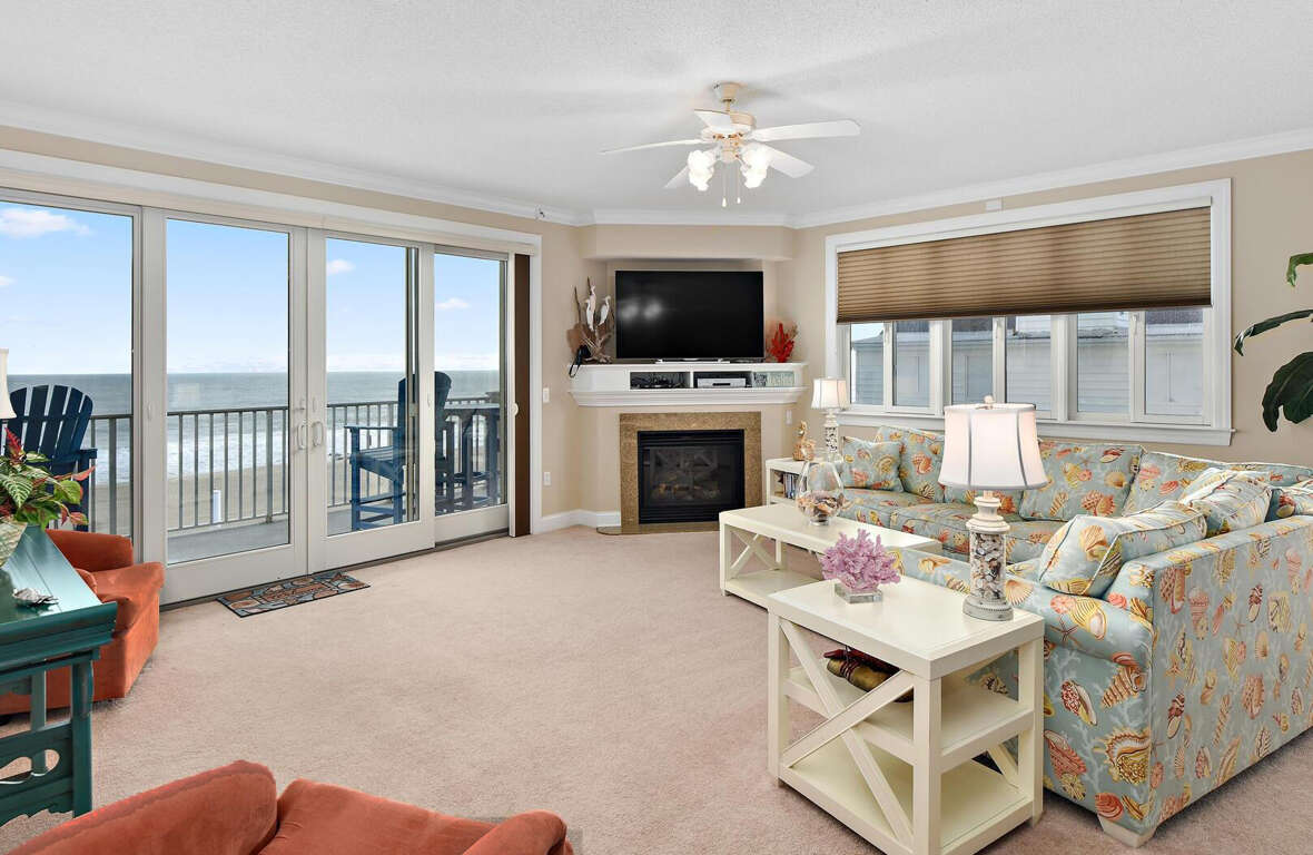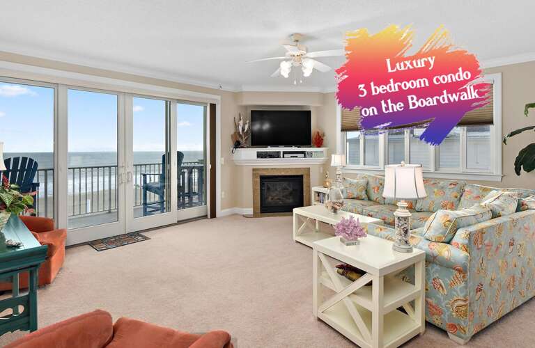 The luxury condo in Ocean City, MD - South Beach #404 boasts a sophisticated design and upscale amenities to ensure a comfortable and indulgent stay for guests. Featuring stunning ocean views, this 3-bedroom/3-bathroom condo offers a serene retreat for those seeking luxury. Guests can enjoy the tranquility of the ocean from the large balcony that extends from the living area to the main room. Inside, a corner entertainment unit with a TV and gas fireplace provides a cozy ambiance. The gourmet kitchen, equipped with stainless steel appliances, caters to culinary enthusiasts. Additionally, the condo includes the convenience of a laundry room with a full-size washer/dryer, ensuring a hassle-free stay. With its luxurious amenities and breathtaking ocean view, South Beach #404 promises a truly indulgent vacation experience.