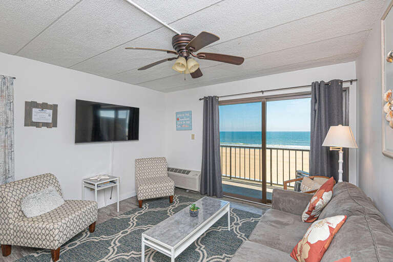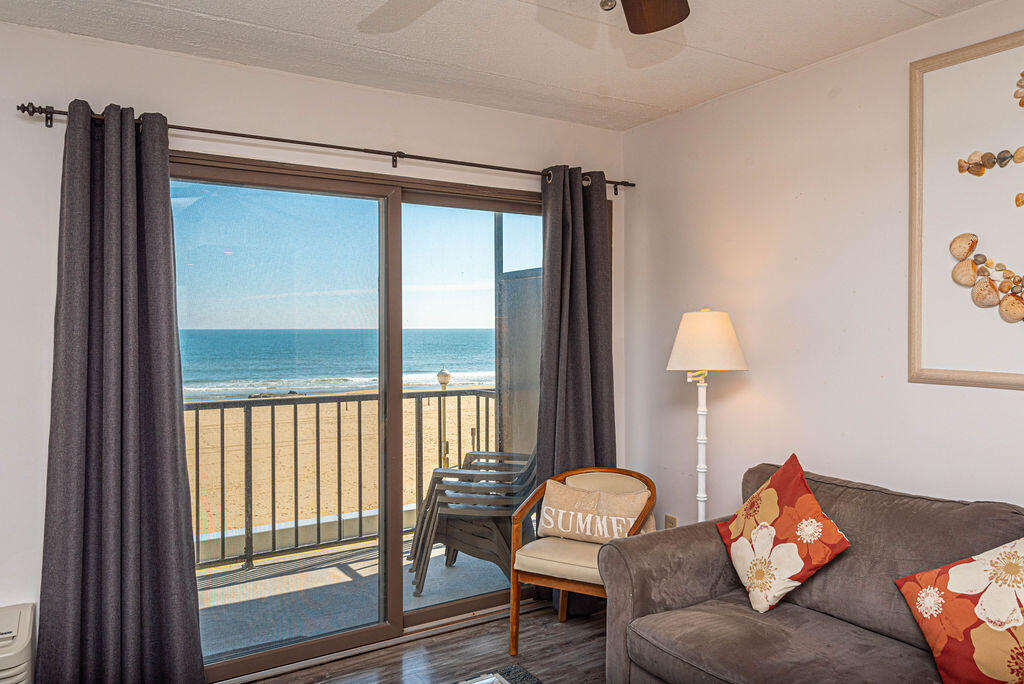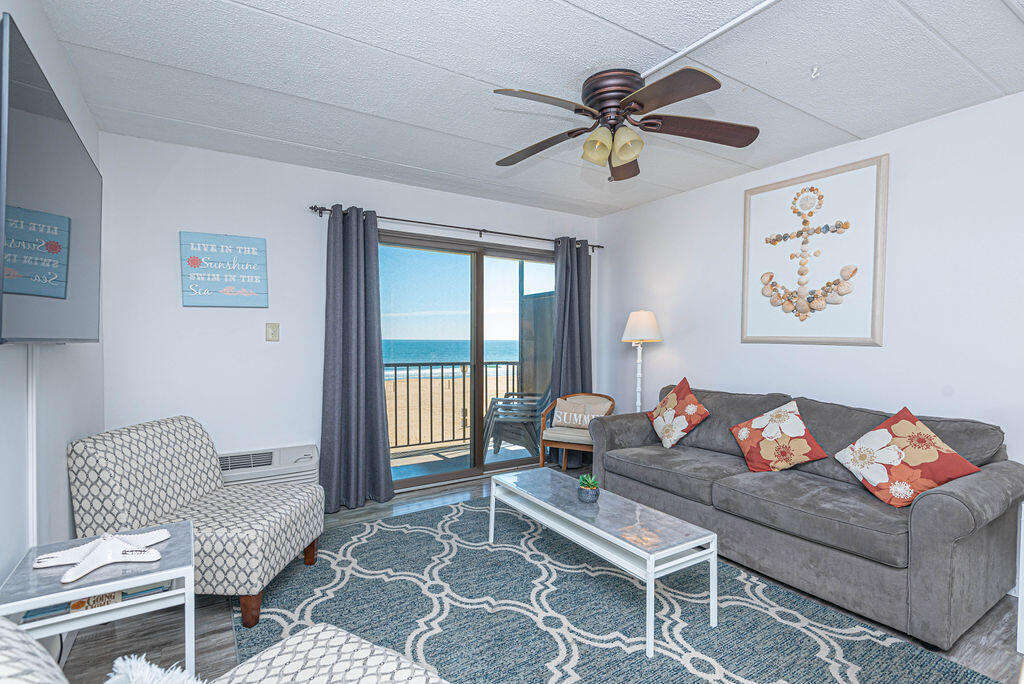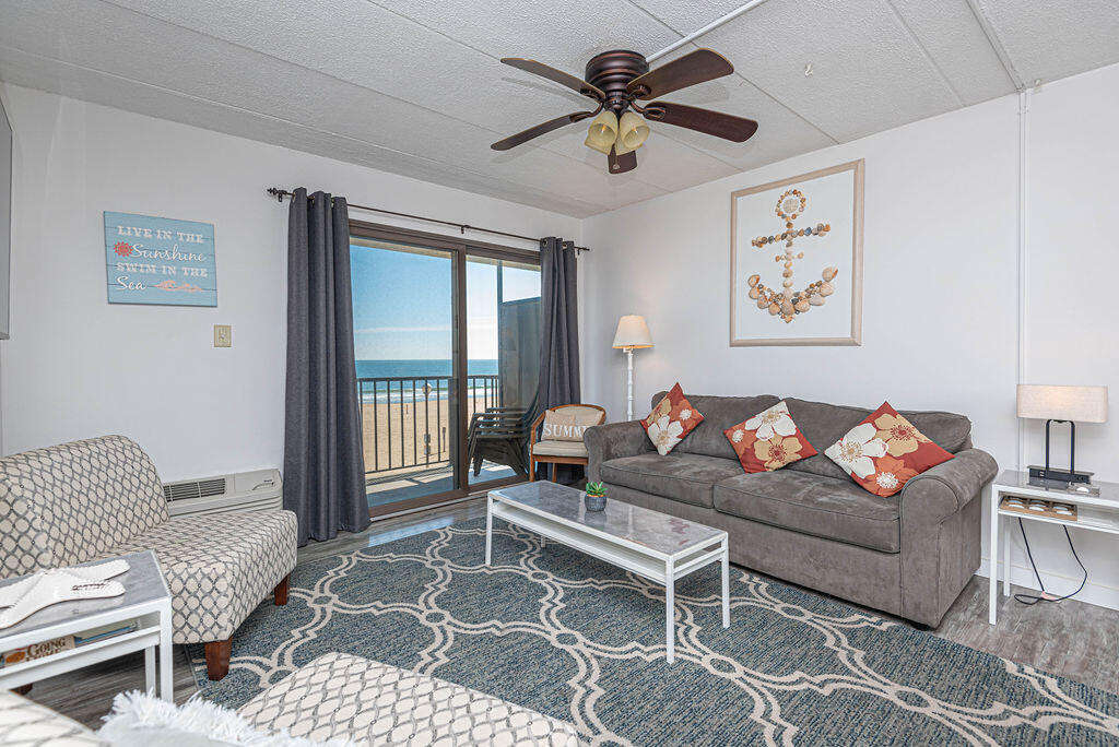 Situated within the Ocean City boardwalk oasis of Decatur House 310, the property boasts a meticulously designed layout and a range of modern amenities, perfect for a relaxing beach retreat. The 1 bedroom/1 bathroom layout is complemented by new furnishings, including stainless steel appliances, offering a comfortable stay for up to 6 guests. Guests can enjoy oceanfront views from the living area and bedroom smart TVs or take a dip in the indoor pool within the building. The property exudes a contemporary charm with its new furniture and appliances, ensuring a pleasant stay. Whether relaxing indoors or taking in the stunning ocean views from the balcony, Decatur House 310 provides the ultimate Ocean City getaway experience.