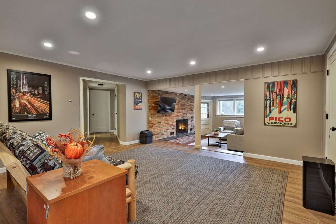 <p>You <strong>park</strong> on a flat, easy-access driveway that holds <strong>six cars</strong>. No steep grades, no winter drama. Inside, the "pod" layout gives you options. The <strong>main living room</strong> features a massive <strong>brick fireplace</strong> for gathering. The <strong>sitting room</strong> offers a <strong>wood stove</strong> and <strong>skylights</strong> for reading or coffee. The <strong>lower level lounge</strong> creates a dedicated breakaway zone for teens or night owls to watch movies without waking the house.</p>