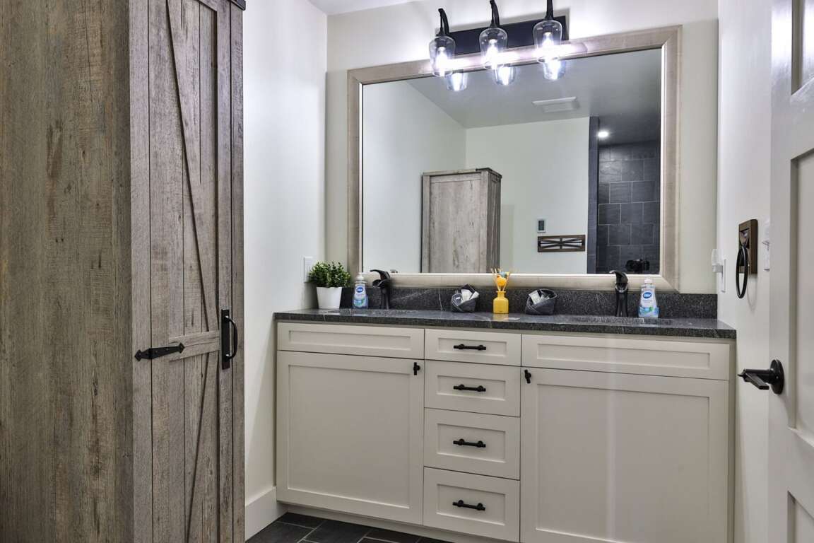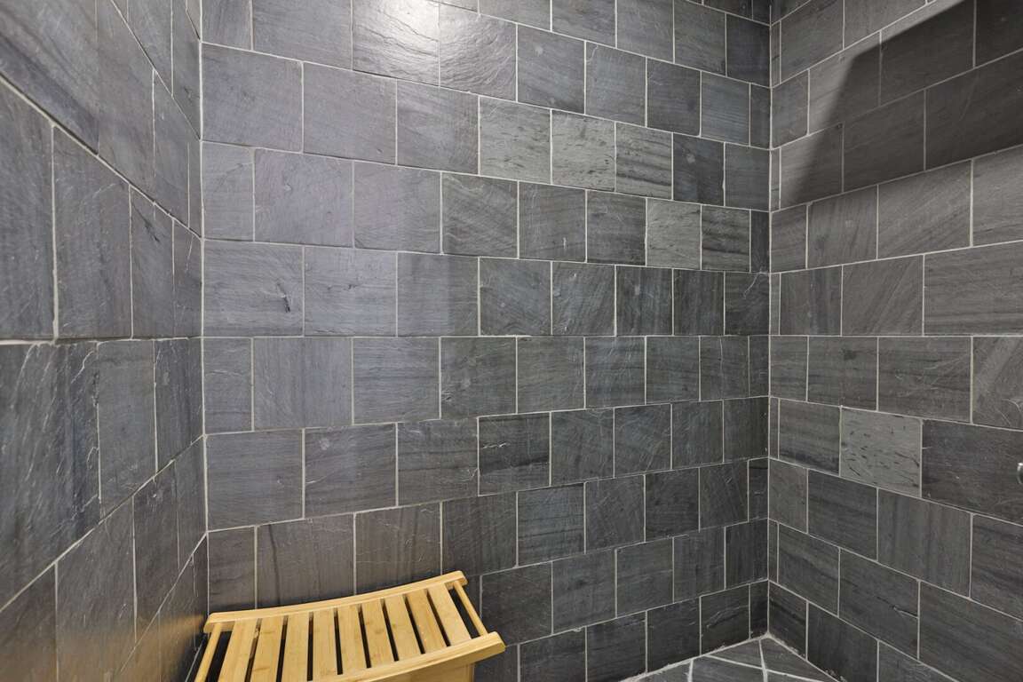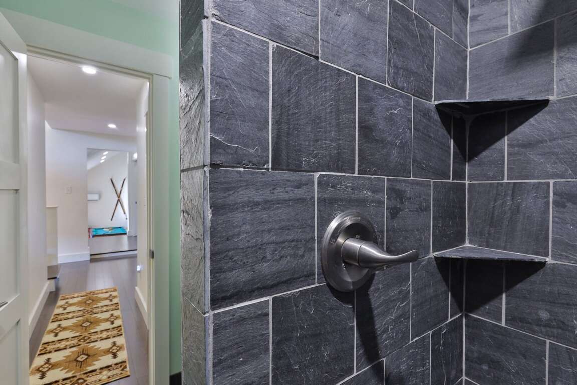 <li><strong>Primary Bedroom:</strong> King bed, walk-in closet, ensuite bath with slate rain shower, sitting area with TV</li>
