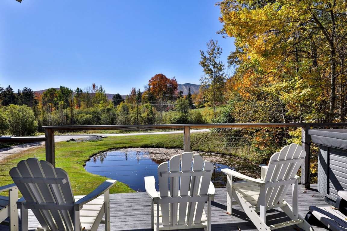 <p>With a <strong>private hot tub</strong> (fee may apply), cedar <strong>sauna</strong>, <strong>oversized deck</strong>, and <strong>views</strong> of Killington Mountain and a peaceful pond, this <a href="https://simple.fyi/killington-vt-vacation-rentals/large-group-cabins-houses/">large-group vacation home</a> is the perfect setting for your next family getaway or trip with friends.</p>
