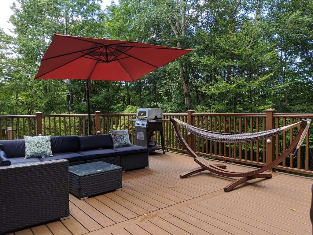 <li><strong>Outdoor Oasis:</strong> Private cedar deck with 6-person dining table, hammock, and large hot tub.</li>