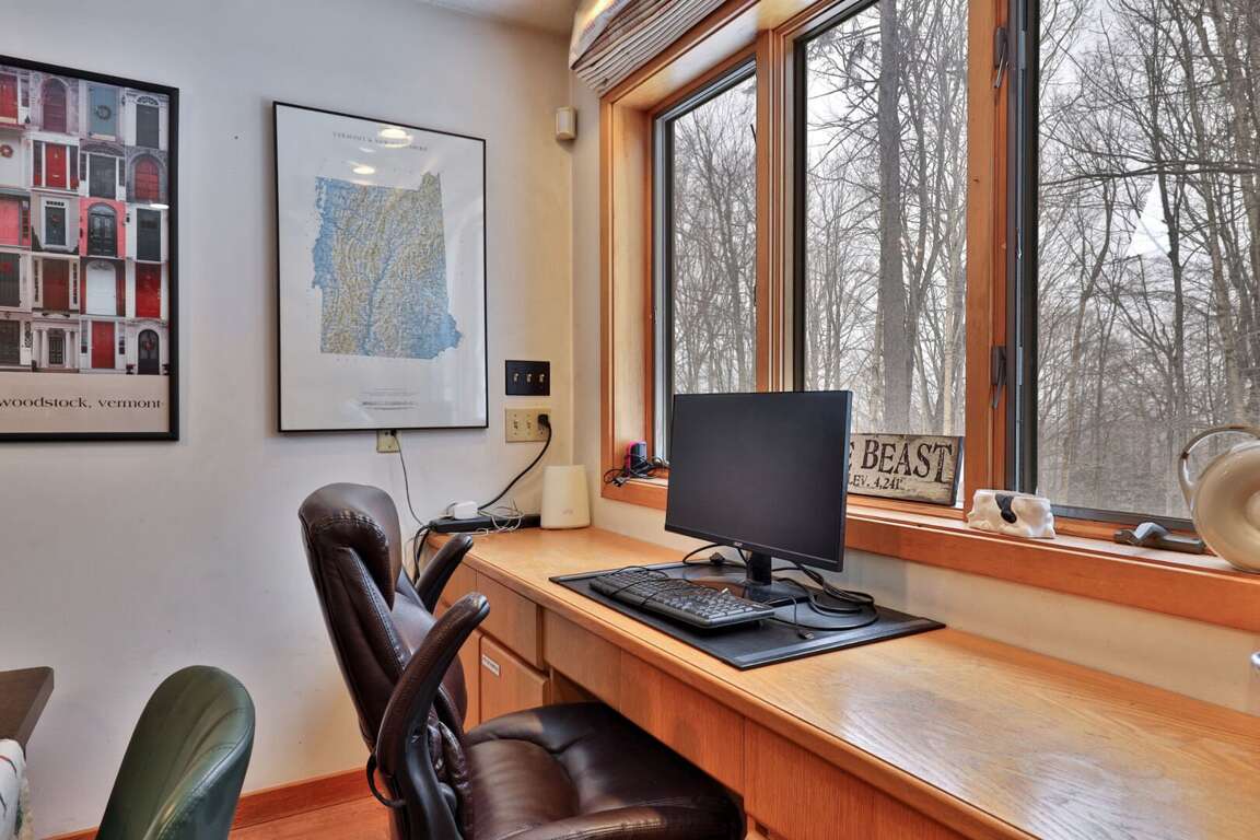 <li><strong>Dedicated Workspace:</strong> Located in kitchen area, monitor, keyboard, mouse, and ergonomic office chair for remote work.</li>
