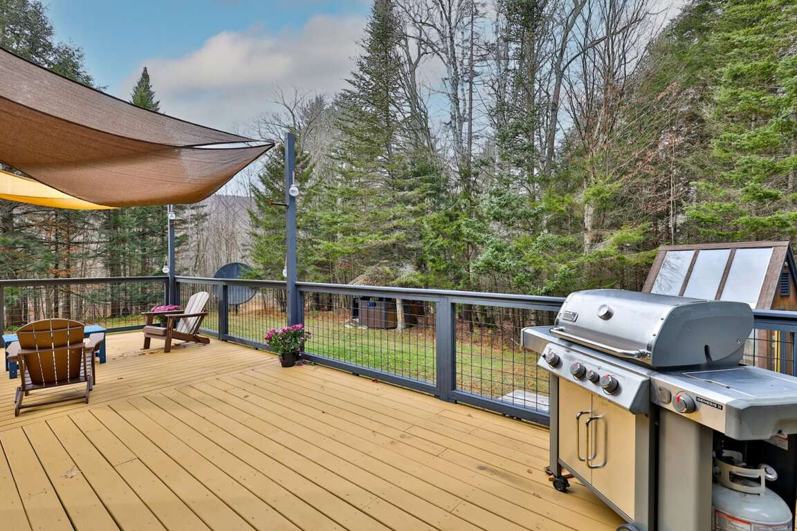 <p>The outdoor space is the real MVP. Step onto the <strong>massive multi-level deck</strong> where a <strong>private hot tub</strong> waits under custom shade sails. Fire up the gas <strong>grill</strong> or head down to the backyard <strong>fire pit</strong> to trade stories about the day’s best runs.</p>