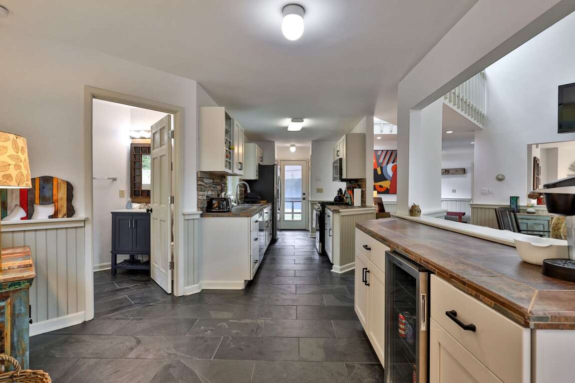 <p>Together Mornings here are efficient. The <strong>chef’s kitchen</strong> was built to fuel the squad, featuring a gas range and a dedicated beverage cooler. <strong>Skylights</strong> flood the <strong>open-concept great room</strong>, highlighting the <strong>vaulted ceilings</strong> and the <strong>stone fireplace</strong>.</p>