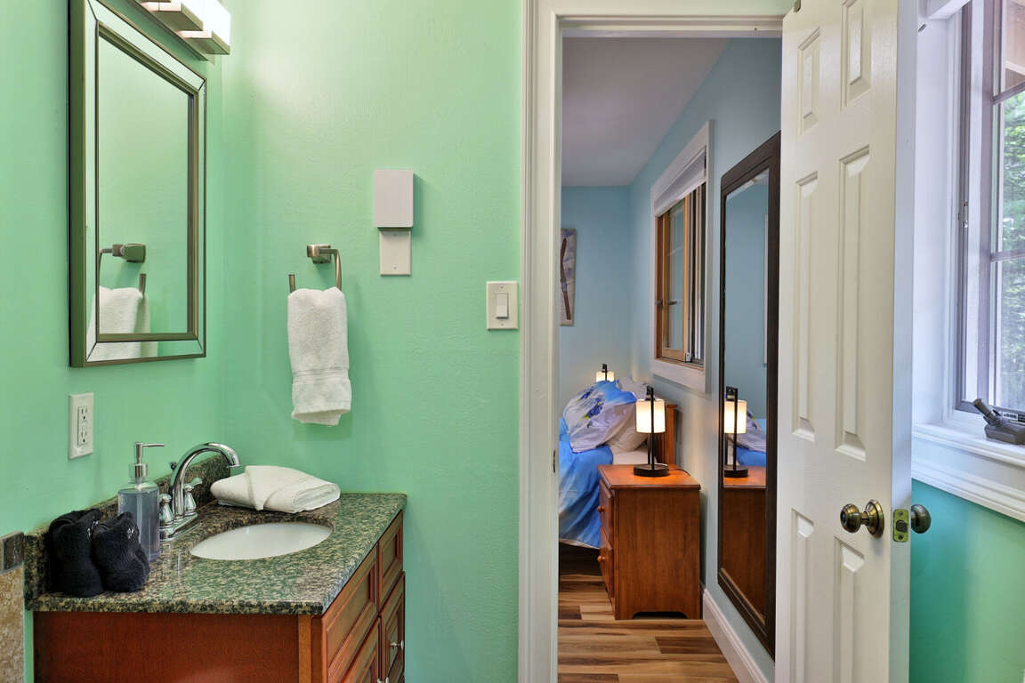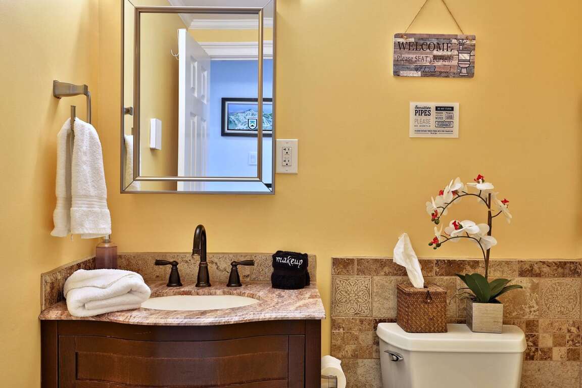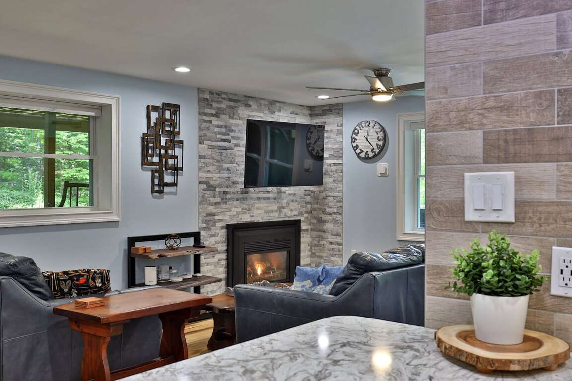 <p>Walk into the lower unit of our duplex home, with its own private entrance, and you'll find the main living room which features a gas fireplace, smart TV, and comfy sofas and lounge chairs. Just past the living area is the fully-equipped open kitchen with granite countertops, stainless steel appliances, kitchen island and dining area. Down the hallway, you'll find three bedrooms, two bathrooms (one ensuite), and sauna. Just off the living room is a den area with futon for additional sleeping.</p>