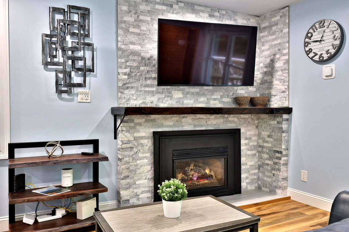 <li>Warm up by the <strong>gas fireplace</strong></li>