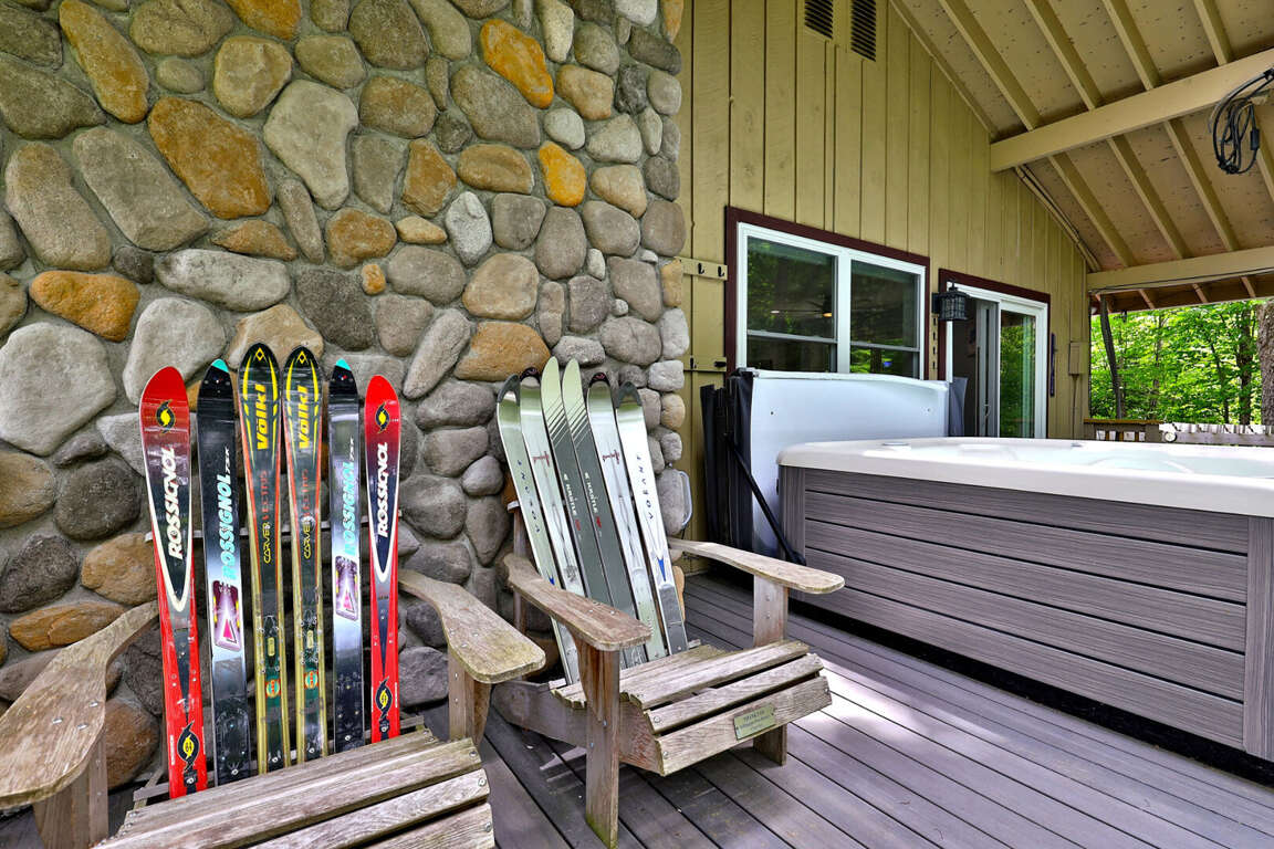 <li>Enjoy the <strong>private hot tub and sauna</strong> after a day of skiing and snowboarding</li>