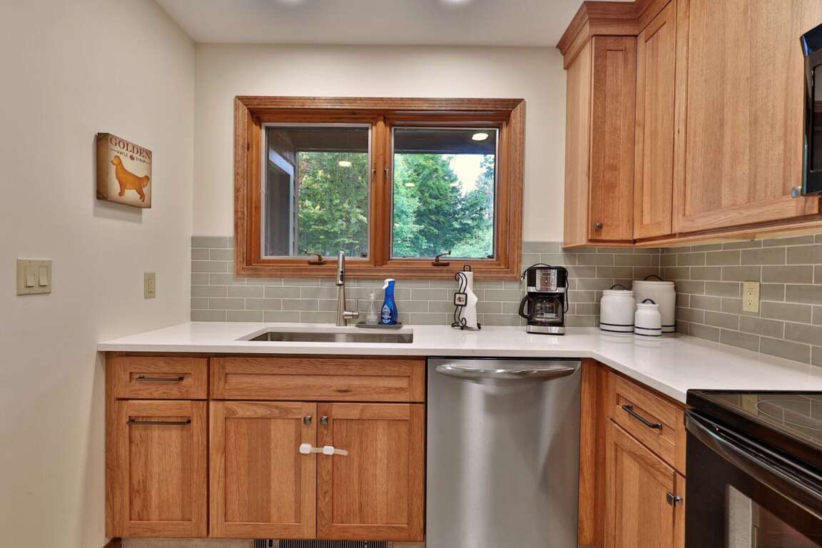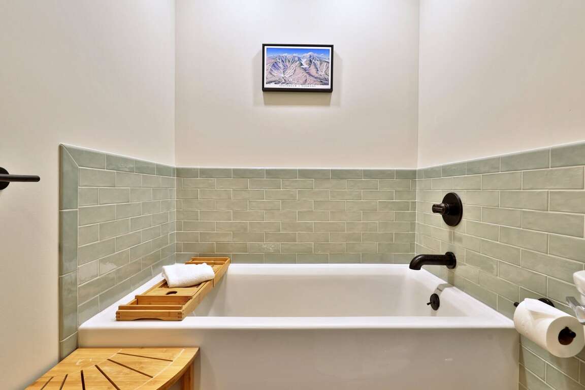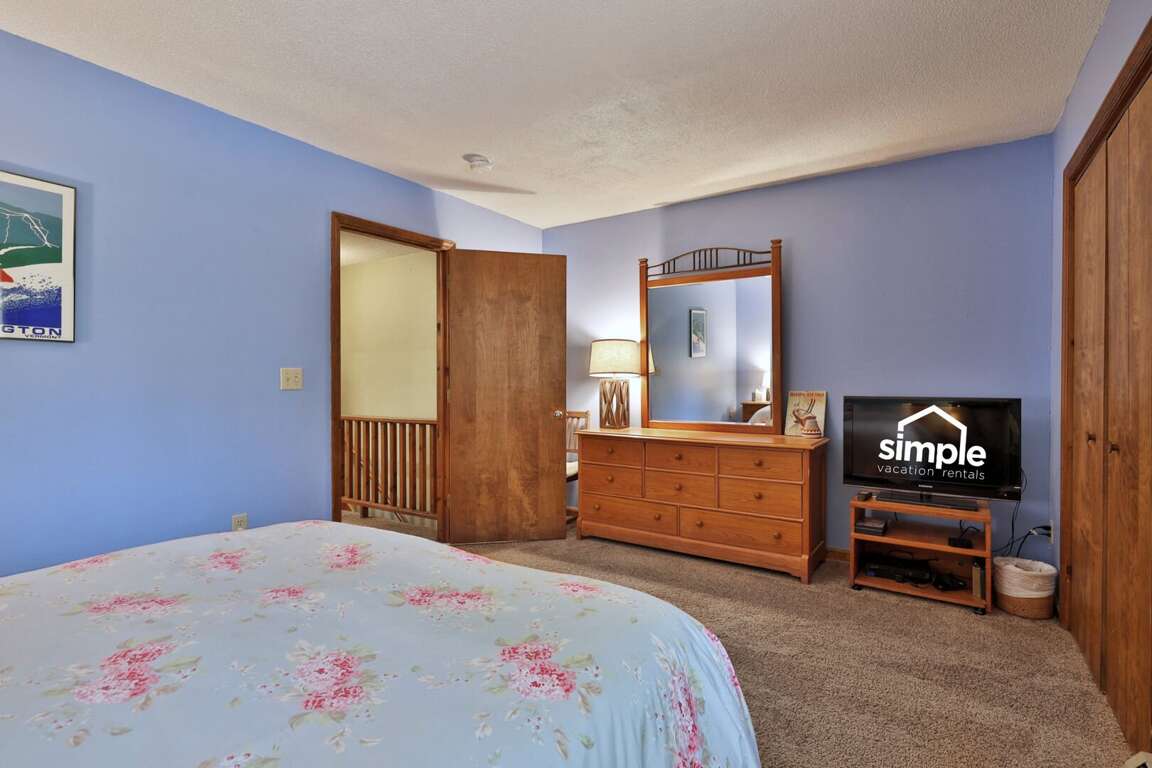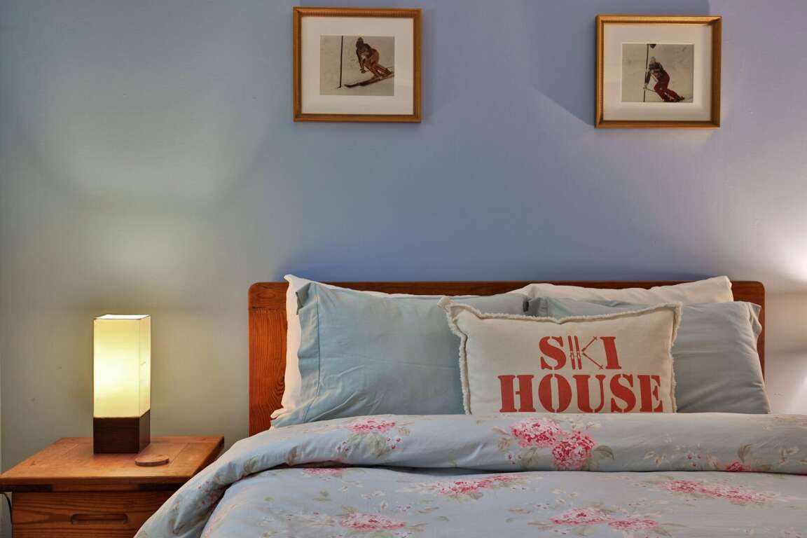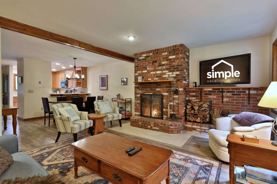<p>The main level features a welcoming living room with a sleeper sofa, smart TV, and <strong>fireplace </strong>(free firewood provided), perfect for unwinding after a day of skiing or exploring. You'll find a fully equipped kitchen with all the essentials, a half bath, dining area, and access to your <strong>private patio</strong>, where you can enjoy serene garden views. Upstairs, the master bedroom has a plush queen bed and TV, while the second bedroom offers both a twin and full bed, plus a renovated full bath. With the bedrooms and full bath tucked away on the second floor, enjoy extra privacy and a restful night's sleep.</p>
