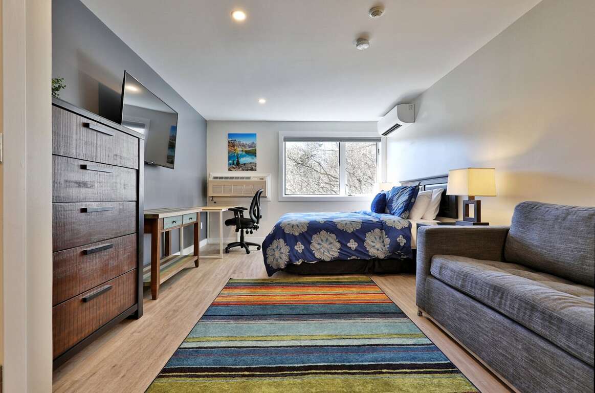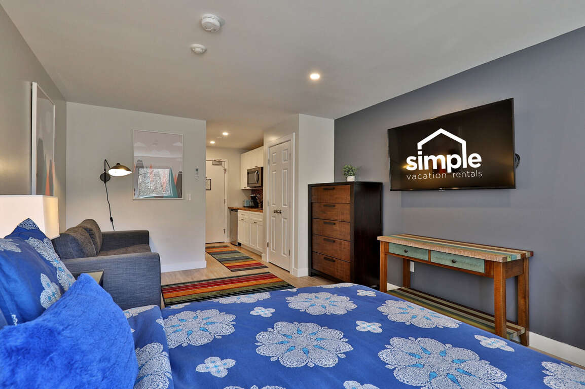 <p>Welcome to The Swirl Suite Annex, one of our <a href="https://simple.fyi/killington-center-inn-suites-vt-condos/">studios at the Killington Center condo complex</a>. Discover the perfect balance of comfort and convenience at this charming <strong>second-floor studio condo</strong>, ideally located in the heart of Killington, Vermont. Designed for couples or small families, this studio sleeps up to <strong>four guests</strong> with a <strong>queen bed</strong> and a <strong>sleeper sofa</strong>.</p>