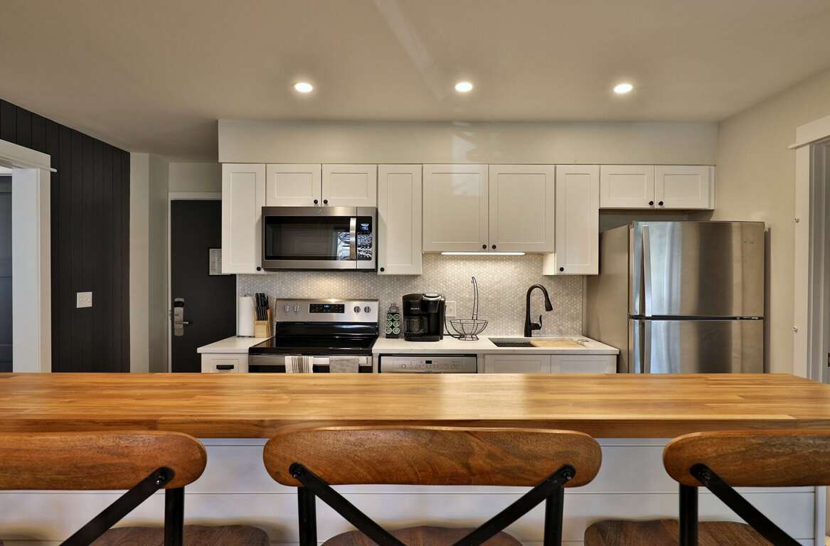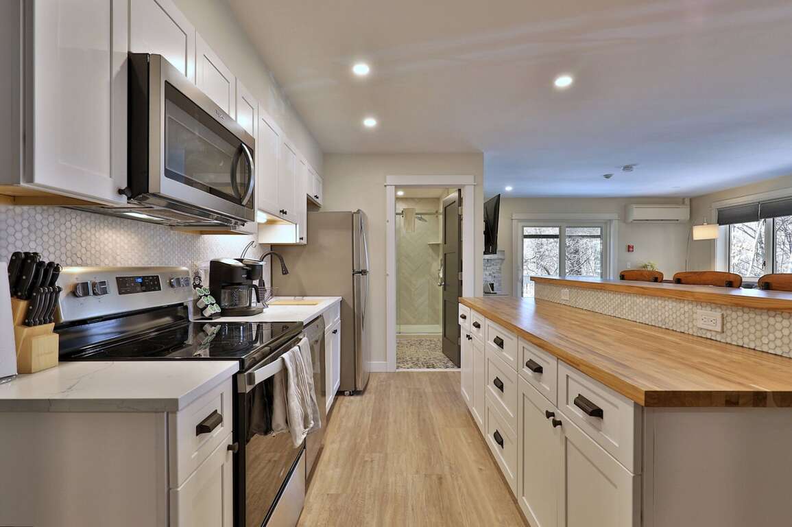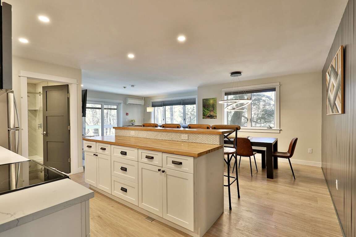 <p>The <strong>open-concept kitchen</strong> is fully equipped with modern appliances and stocked with all the essentials. Whether you are preparing a hearty breakfast before hitting the slopes or a gourmet dinner after a day of adventure, the <strong>kitchen's island</strong> and <strong>dining table</strong> make it a practical and social space for meal prep and shared dining experiences.</p>